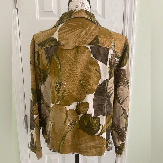 Chico's Brown and Green Floral Jean Jacket