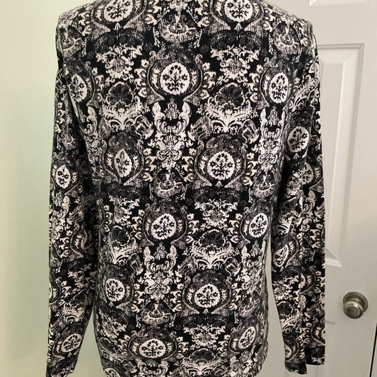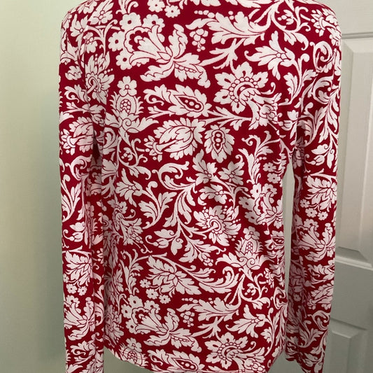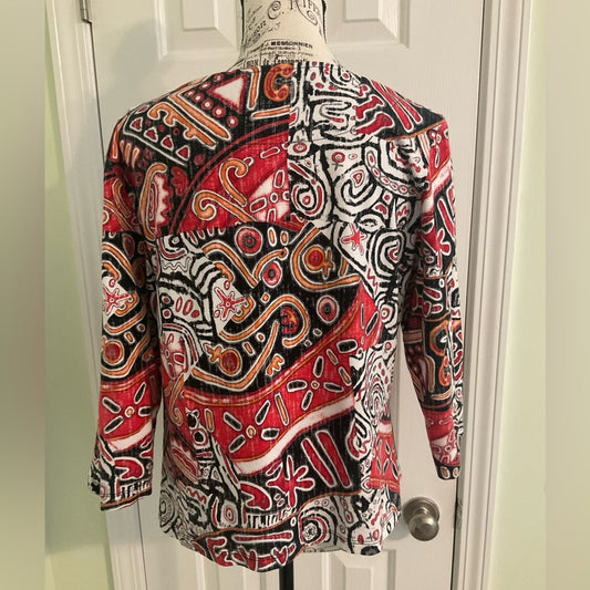 Ruby Rd. Top - black, white and red geometric print - 3/4 sleeve