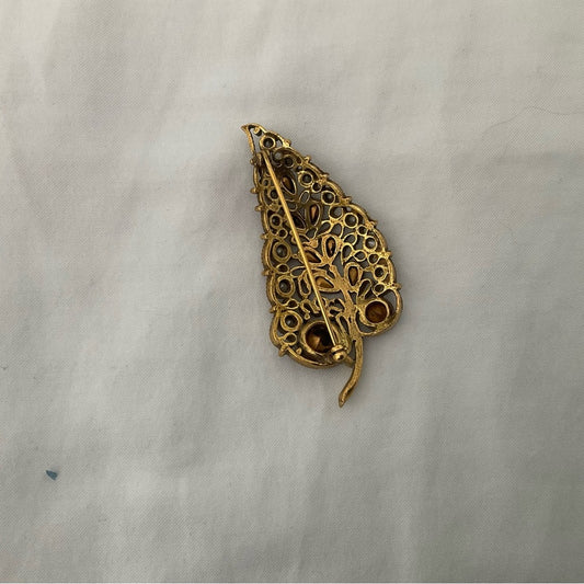 Vintage Gold color and Red Leaf Brooch