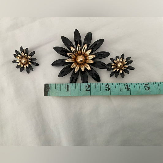 Sarah Coventry Vintage Black and Gold Floral Jewelry Set