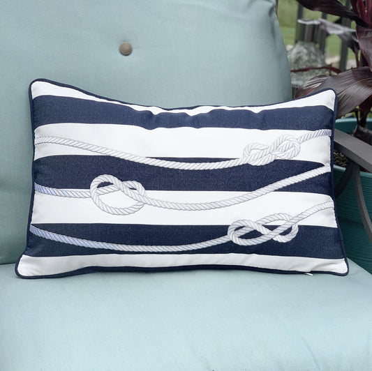 Blue and White Stripe Nautical Indoor/Outdoor Rope Pillow