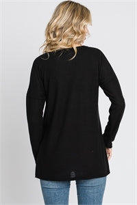 Sweet Adelya Black Long Sleeve Solid Pocket Knit Top