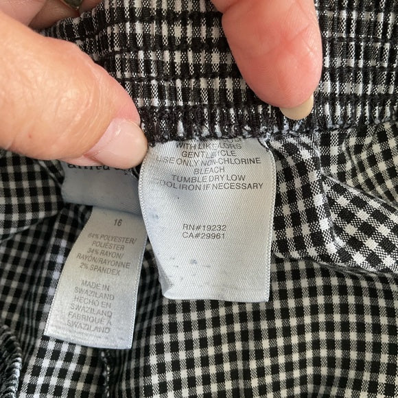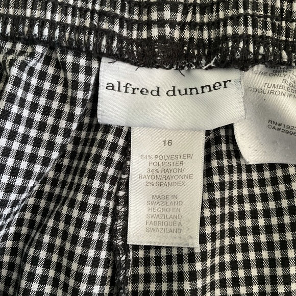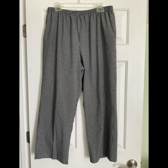 Alfred Dunner black and white checked pants with elastic waist and front pockets. Pockets has a silk feel on the front of it.
