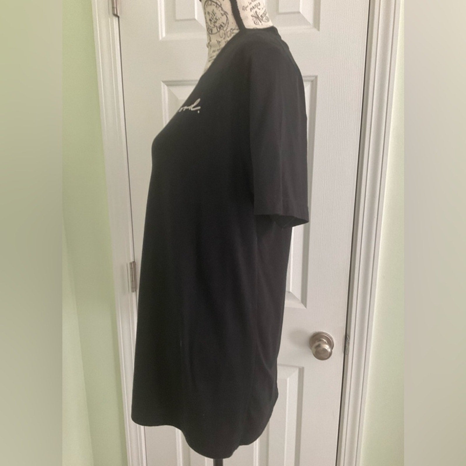 Stylish black tee with white lettering and short sleeves. Features elegant white script on the front that says “god is so good”. Comfortable and versatile. Only worn a few times! This is a Bella Canvas tee and has a soft feel.