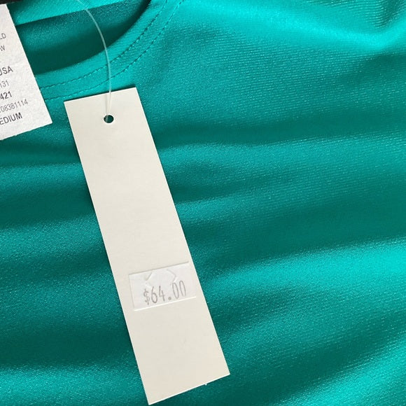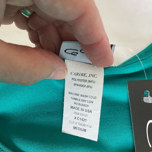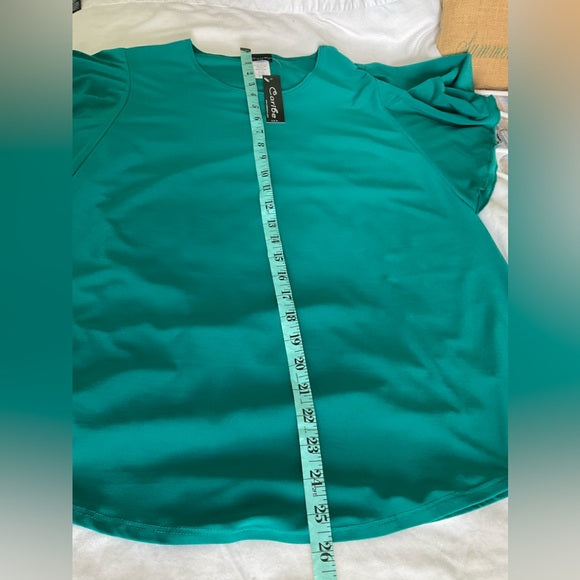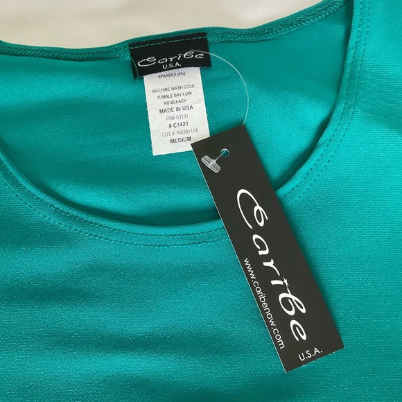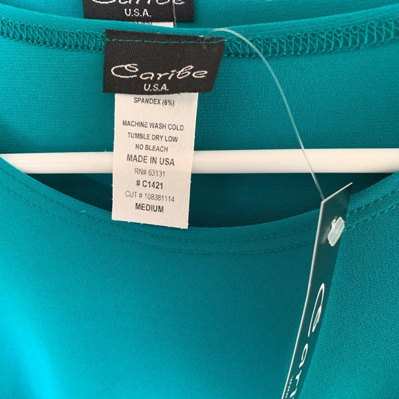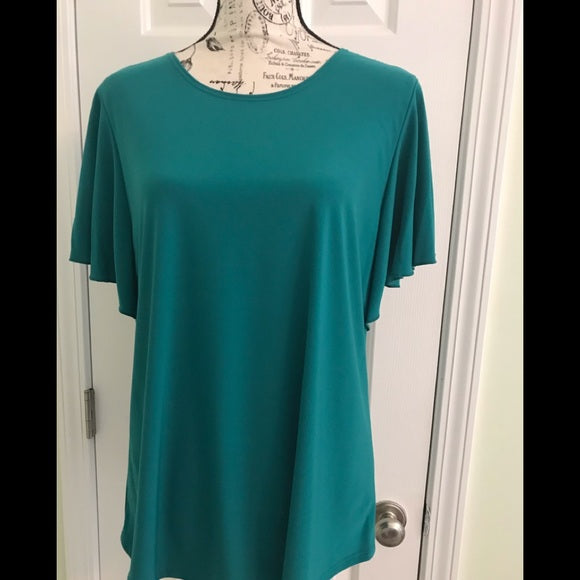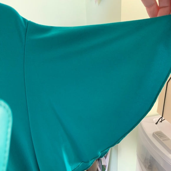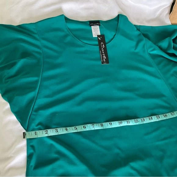 Caribe top with Silky feel and stretchy describes this beautiful green color top with flared sleeves (see pic).