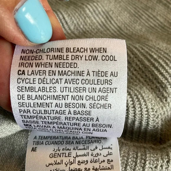 Charter Club Sweater wrap that is long and very soft. Has long sleeves and a rib like detailing at the bottom, and at the end of the sleeves which also has button detailing too. This is a light gray.