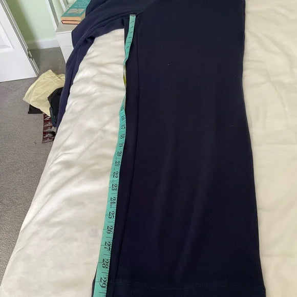 Crown & Ivy pull on sweatpants with elastic waist and tie string. Has side pockets and straight legs, in a dark blue color. They have never been worn and still has tags on them.