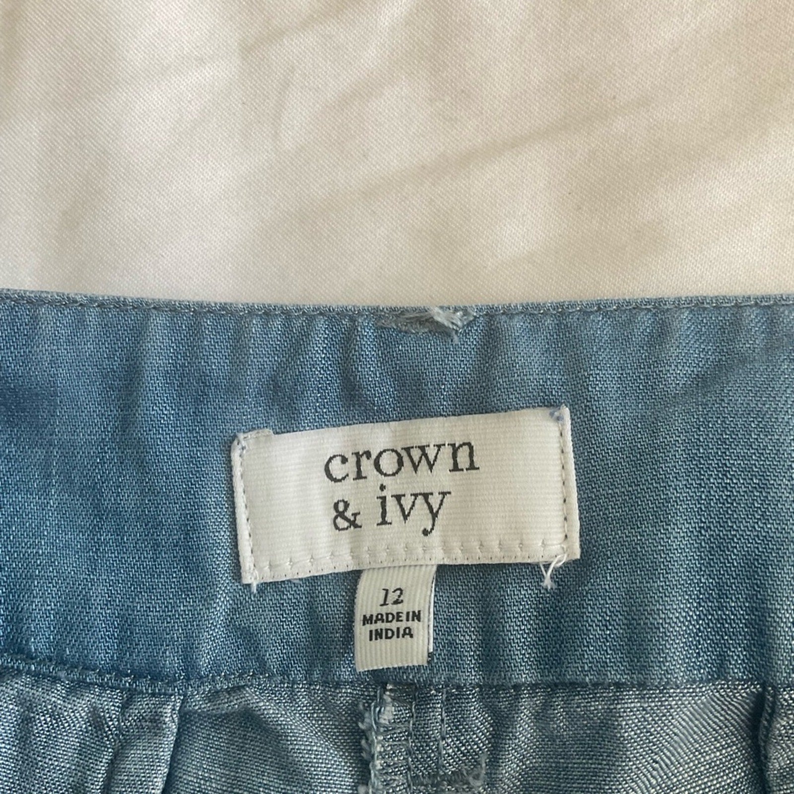 Crown & Ivy Stylish wide leg pants in a blue color. These are very comfortable to wear and flow great with the wide legs. Has a zip and hook front closures with small straight pockets, and also has a tie belt with them. Perfect for casual wear.