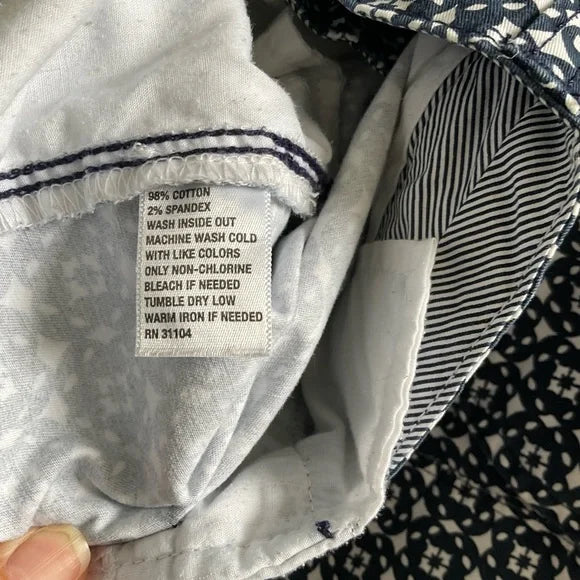 Crown & Ivy Pants in blue and white with zip and button front and front pockets. They are more of a short ankle pant, so please check measurements below.