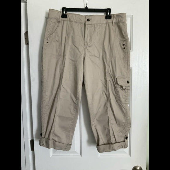 Size 16W and Inseam length rolled up is roughly 21” and waist is roughly 18”.
