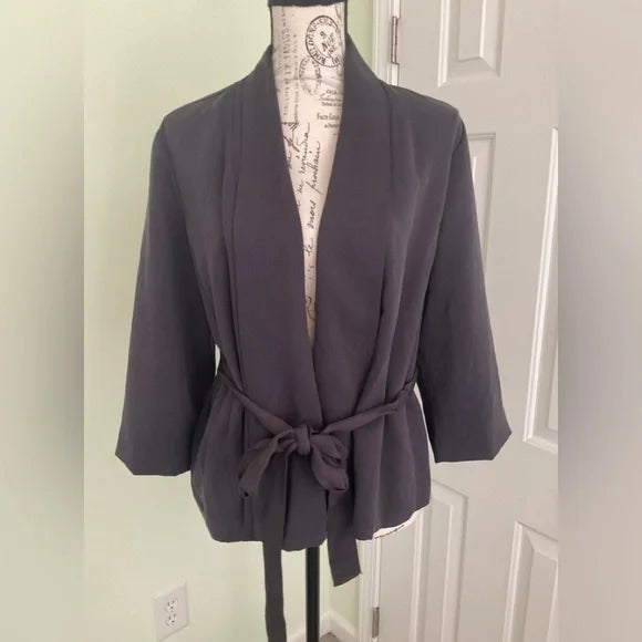 Forever 21 black short lapel Jacket that has a belted tie, see pic that one of the belt loops needs to be sewn back in.