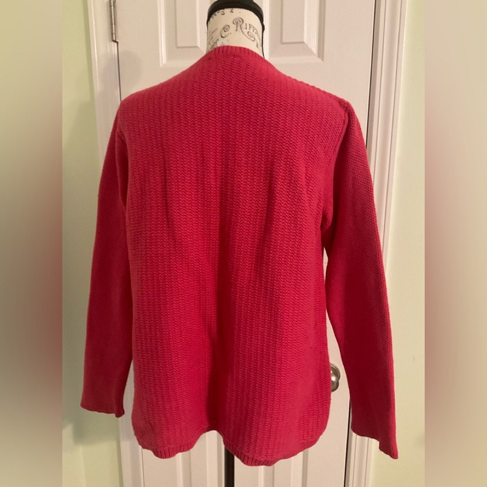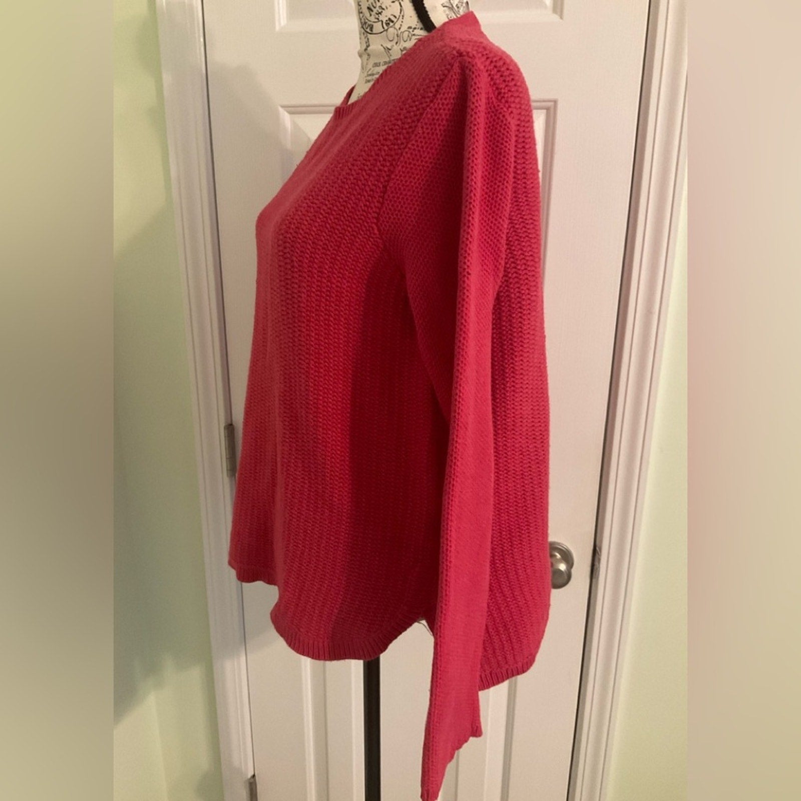 J. Jill crews neck long sleeve sweater. The back is a little long then the front and notice the closeup pic of the way the front hem line is done.