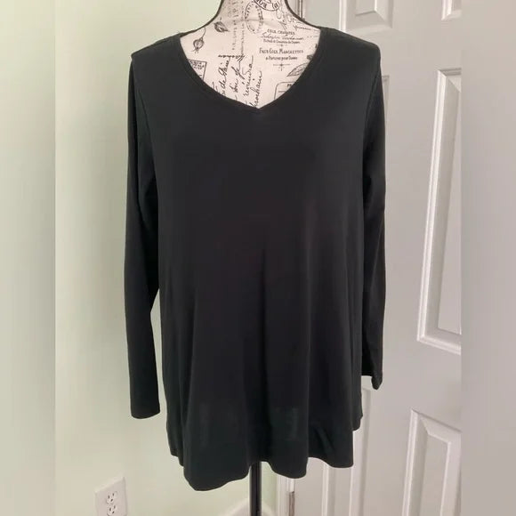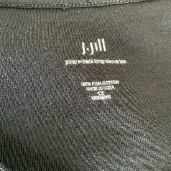 J. Jill black long sleeve v-neck pullover. Has side slits and back is 1” longer in back. Also has a hem look at the bottom.
