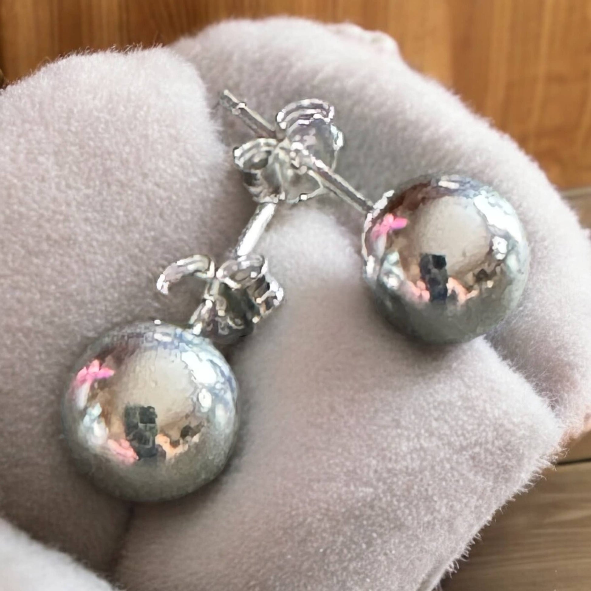 Clean and classic is the best description for these earrings. They are a 8mm sterling silver ball on a sterling silver stud/post. Comes carded and packed in anti tarnish bag.