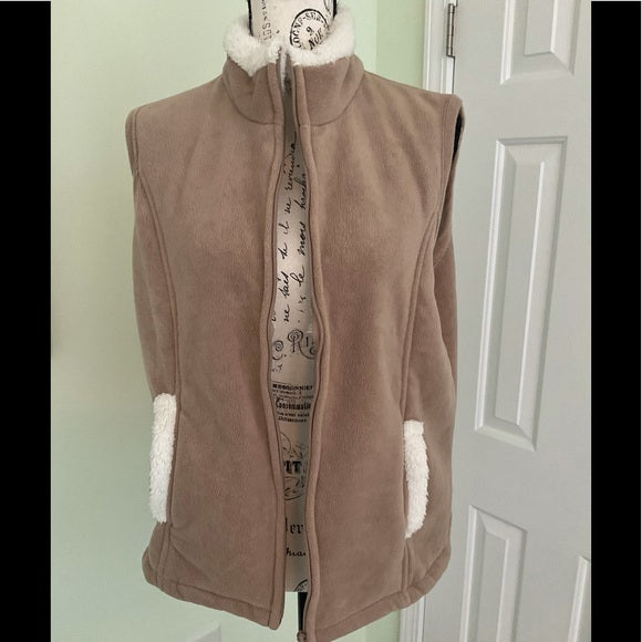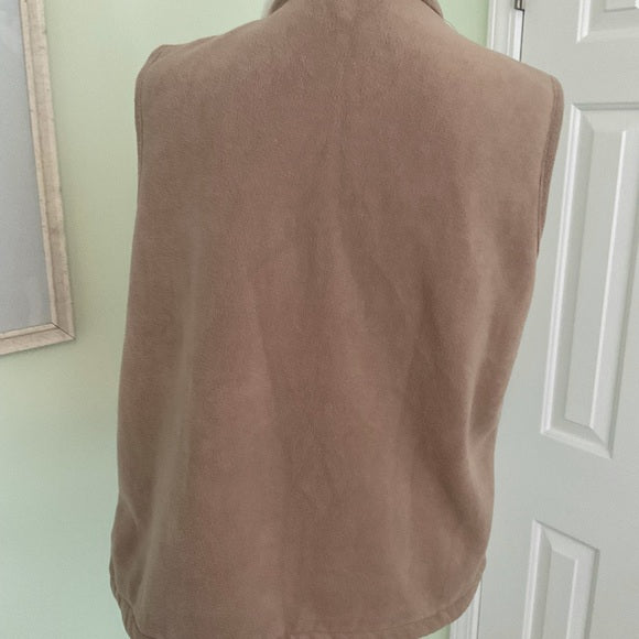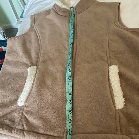 Jane Ashley tan vest with full zip closure and front pockets. This vest if very soft with fur lining and fur trim on pockets.