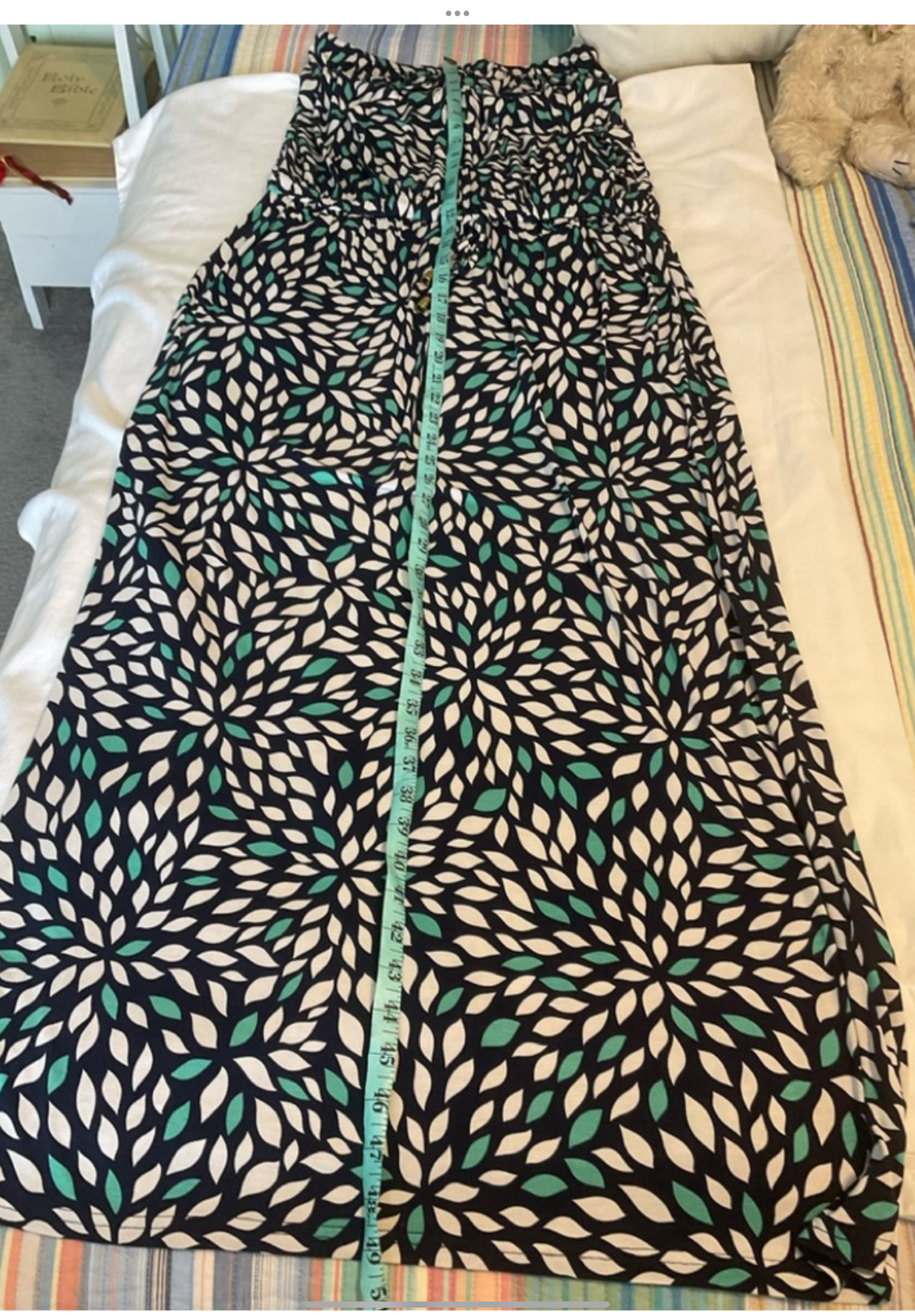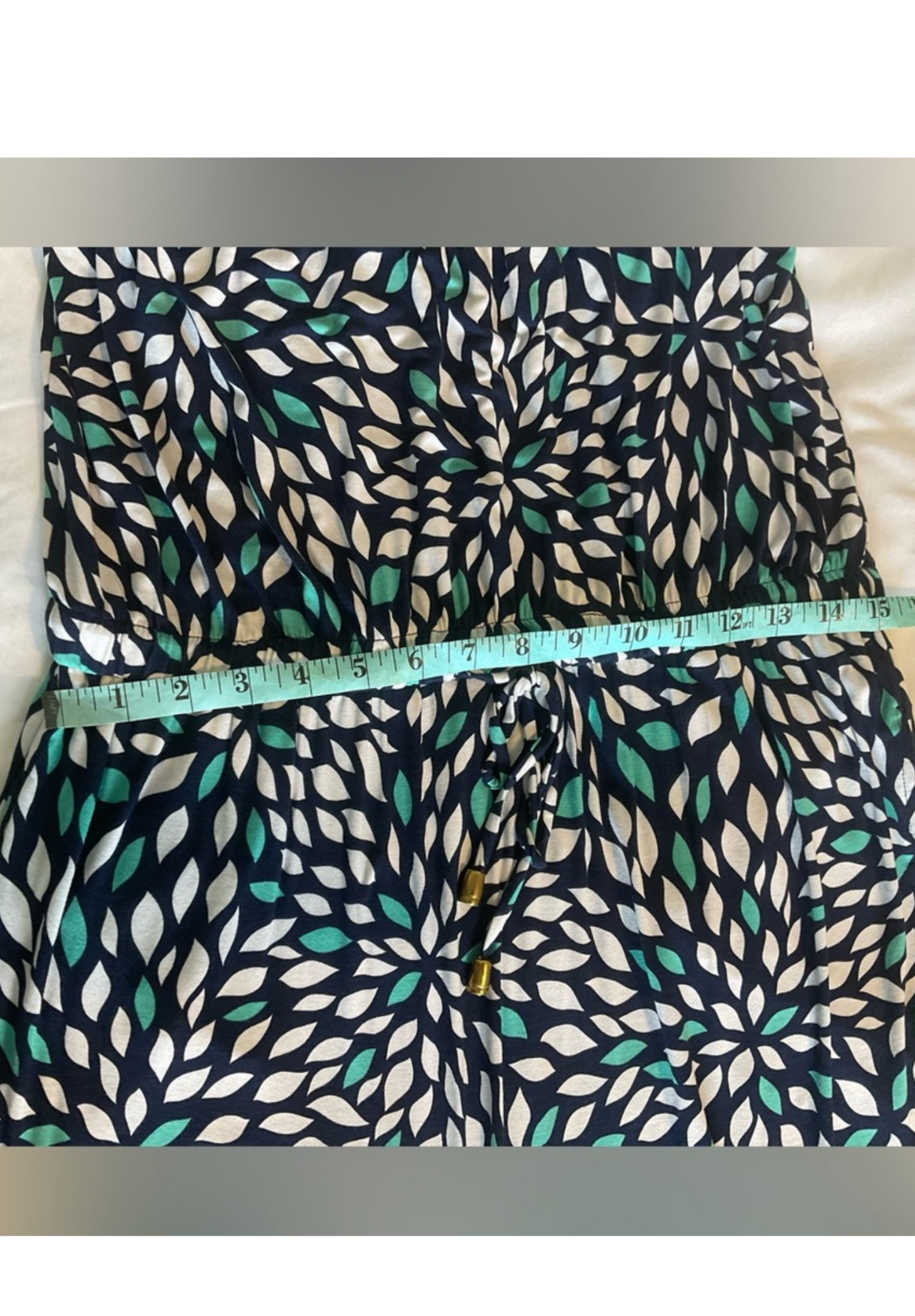Size 8 and length measures roughly 49” and waist 15”.