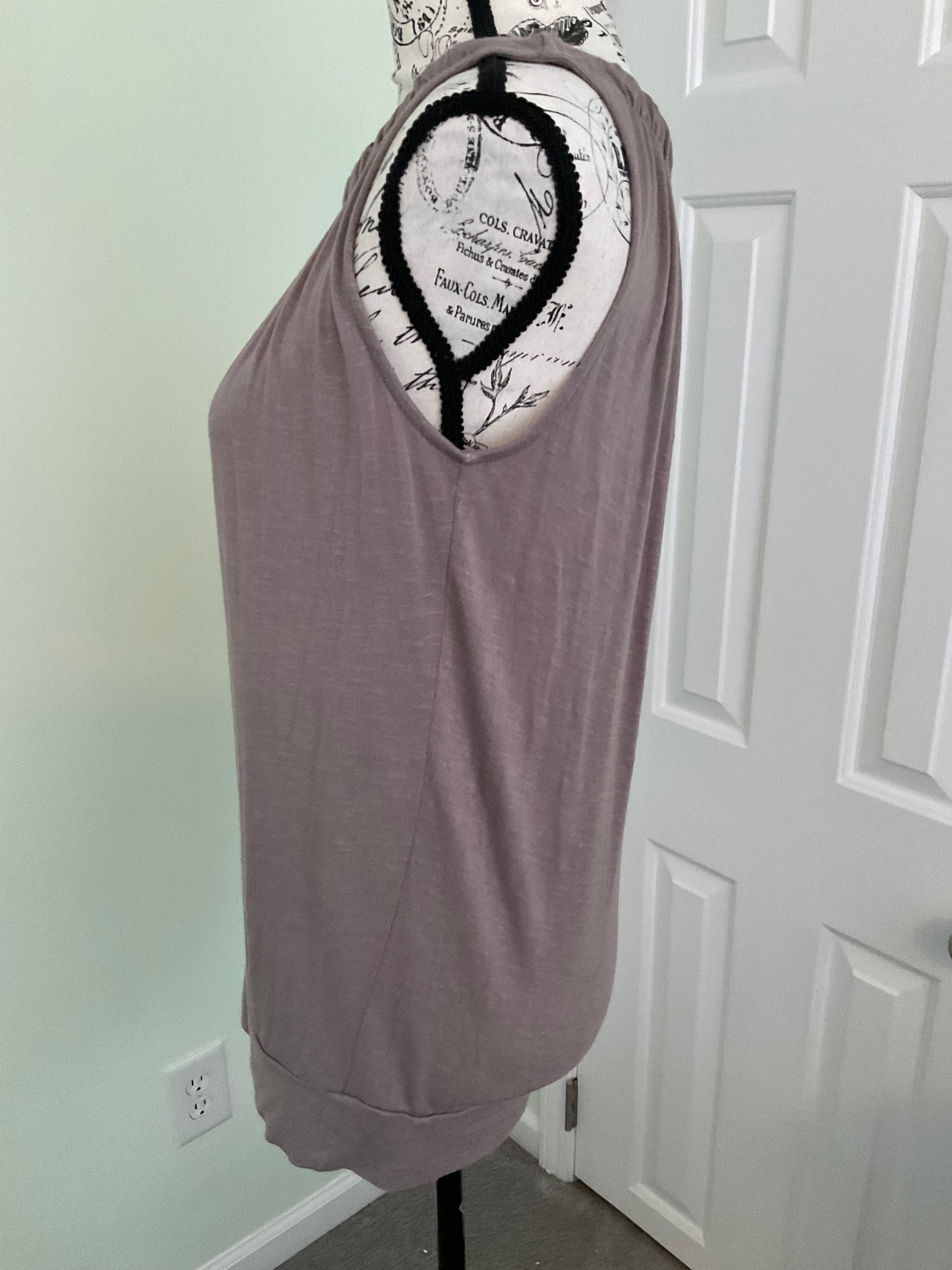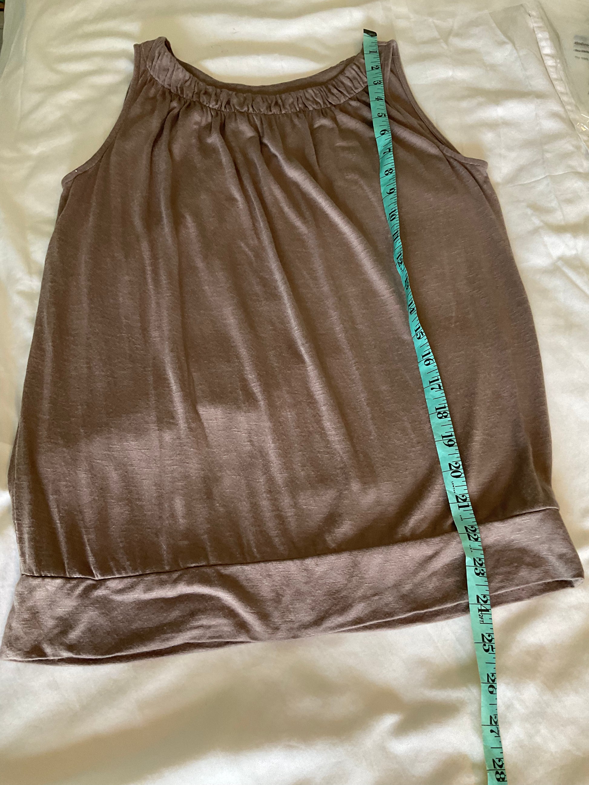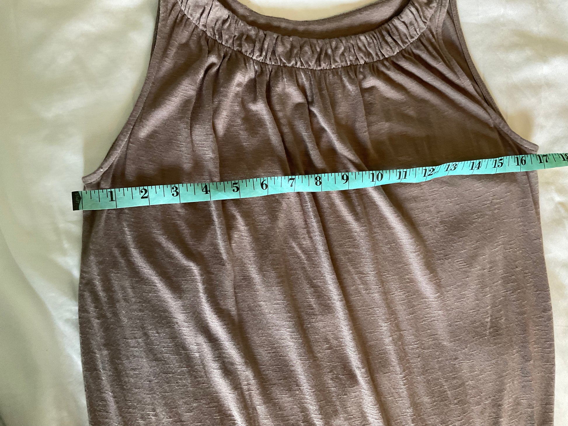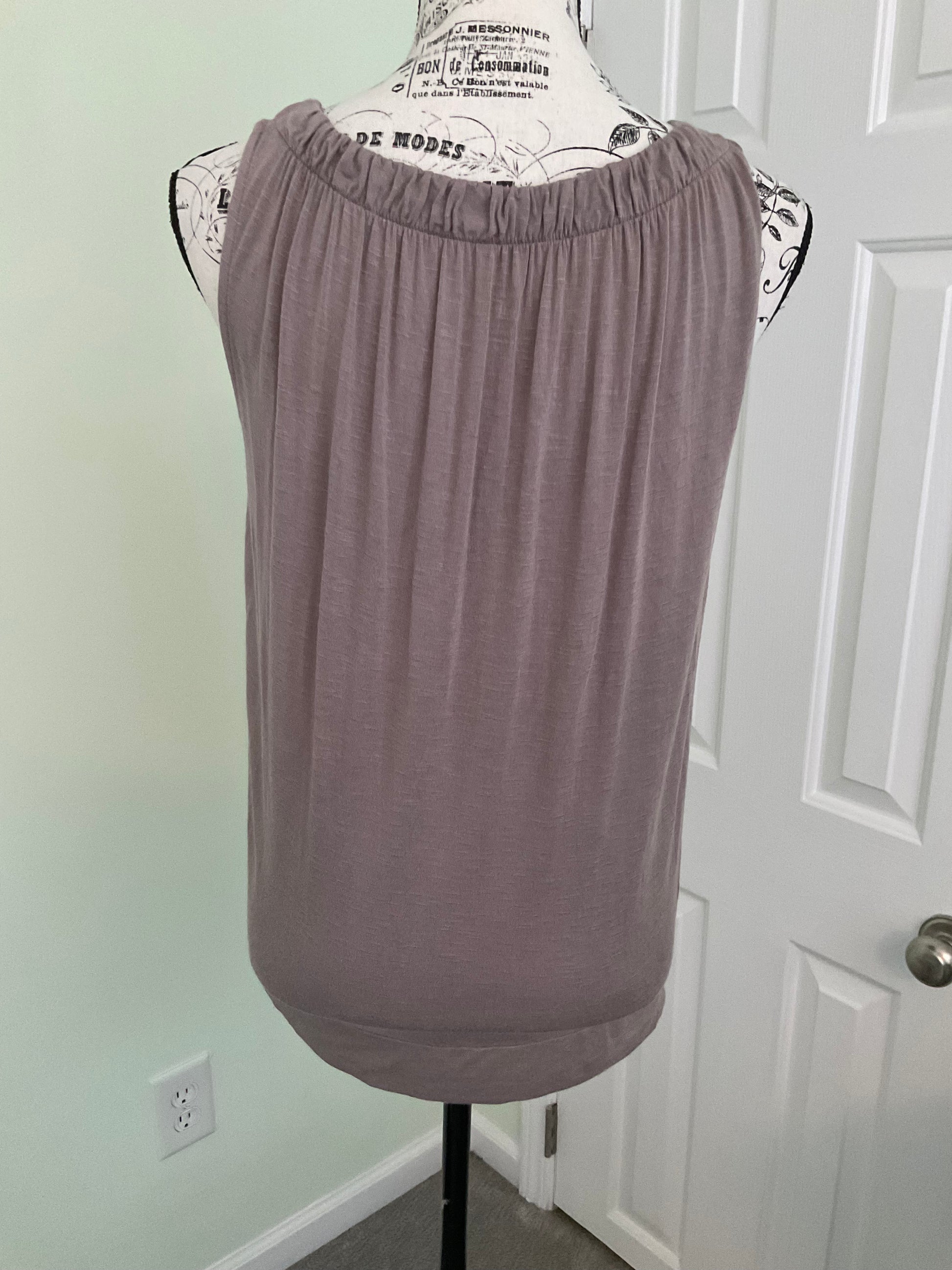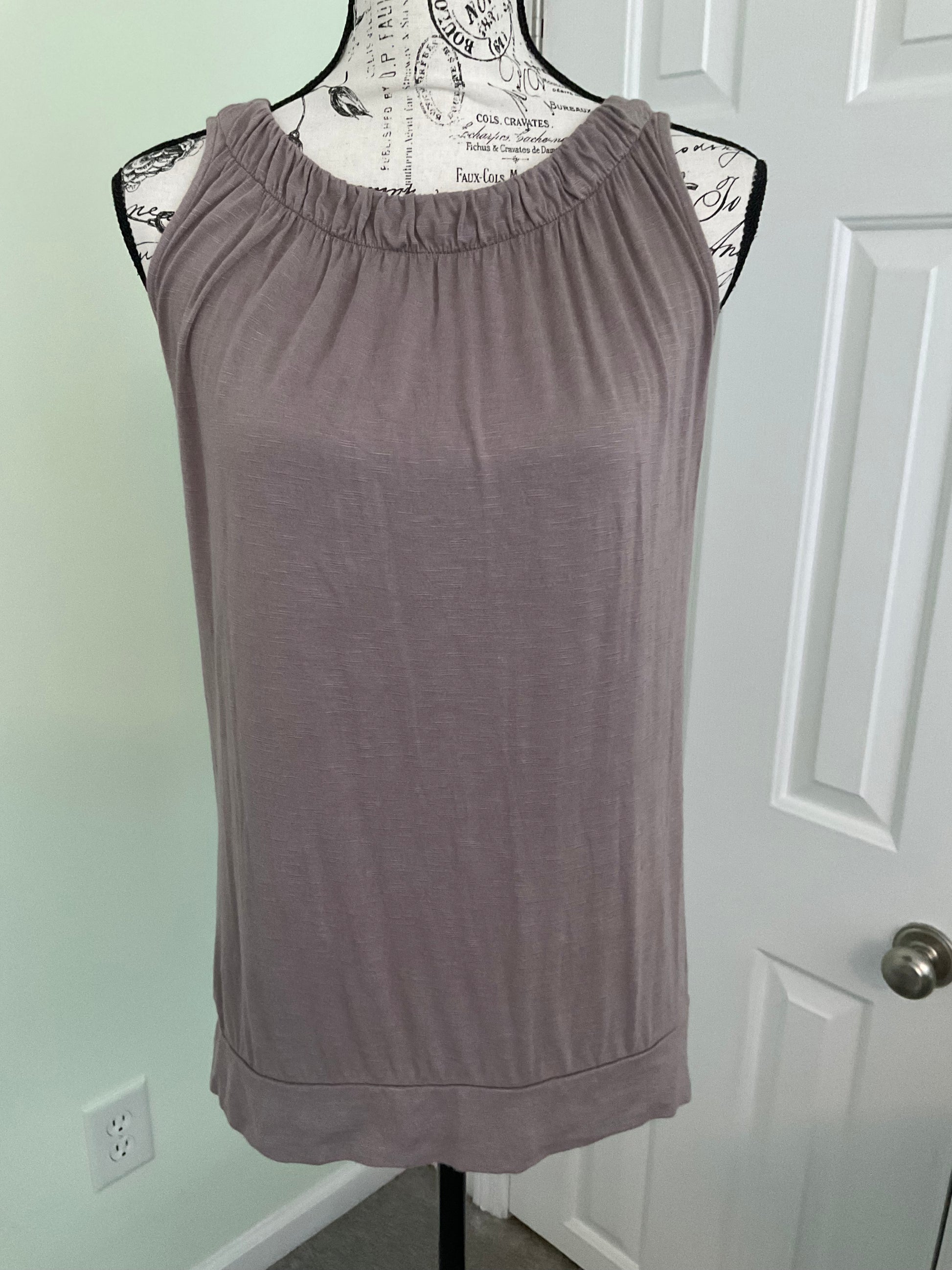 Ann Taylor Loft sleeveless tank in a medium brown color and ruched detailing at the top.
