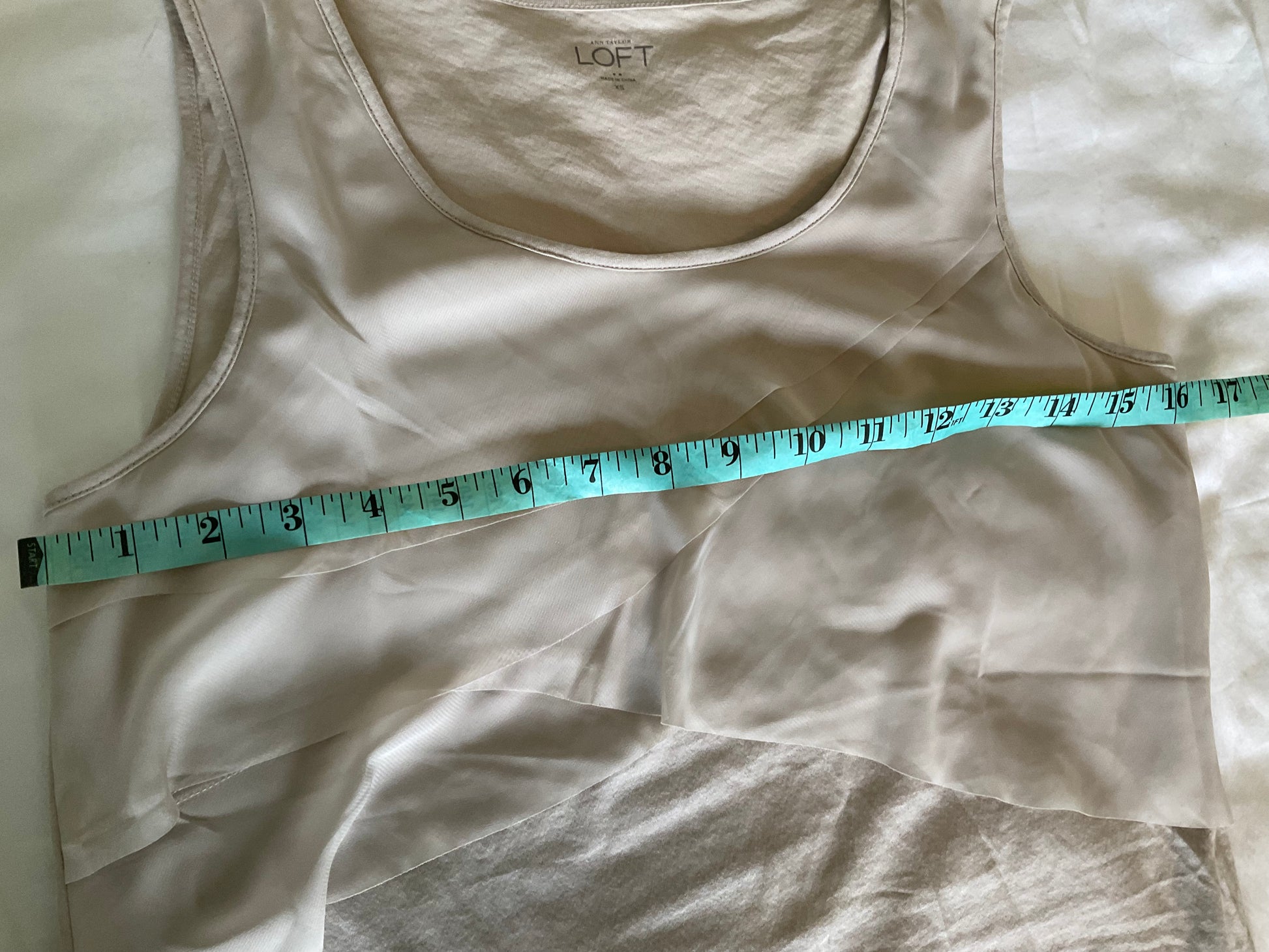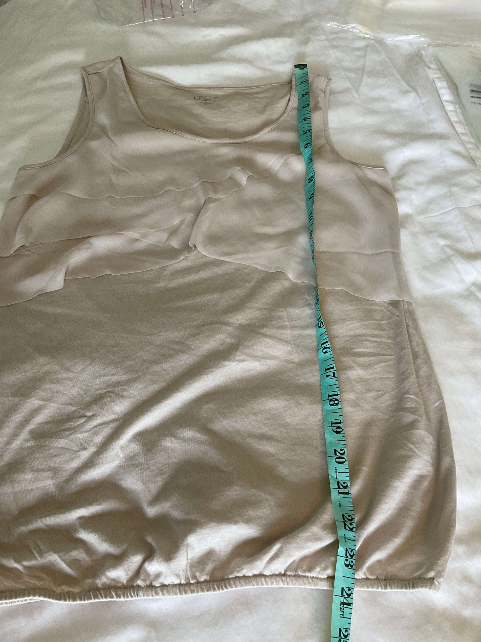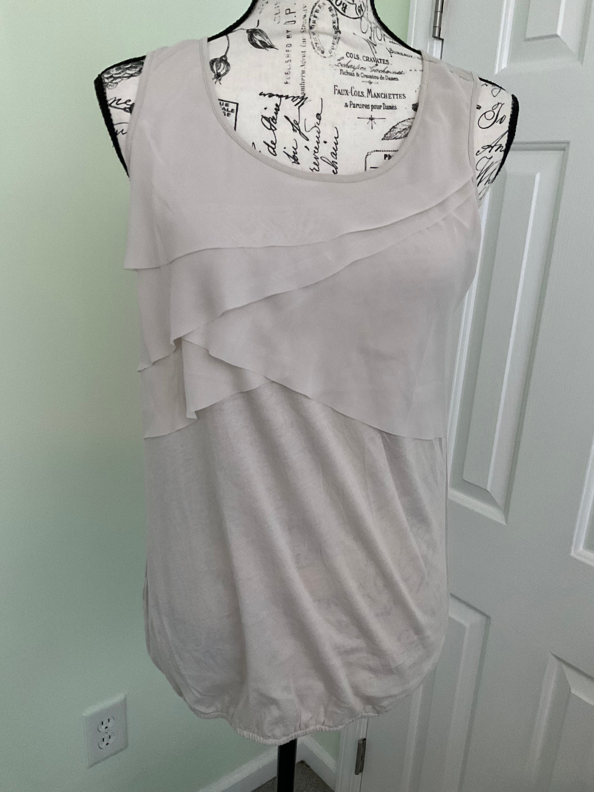 Ann Taylor Loft tank in a Light tan or a cream color with an overlay look on the front and elastic at the waist.