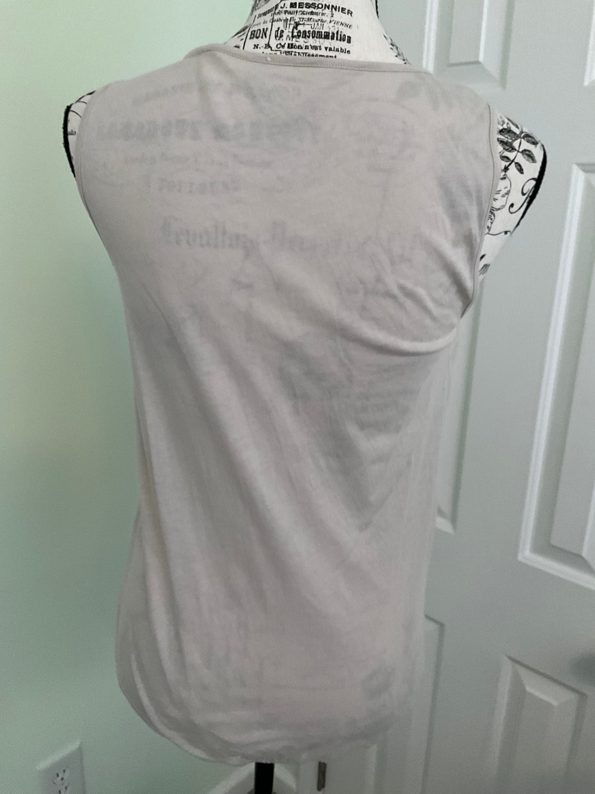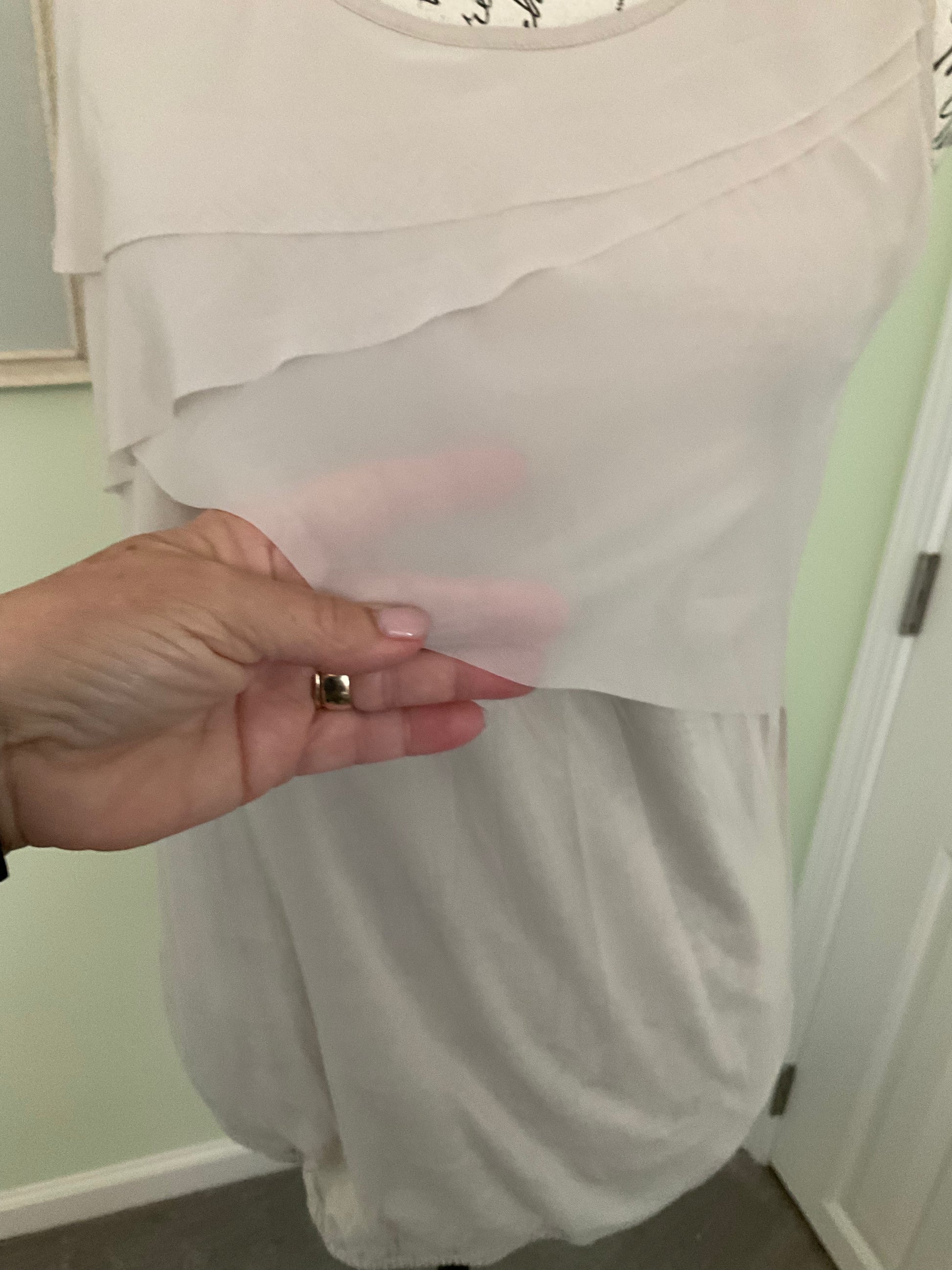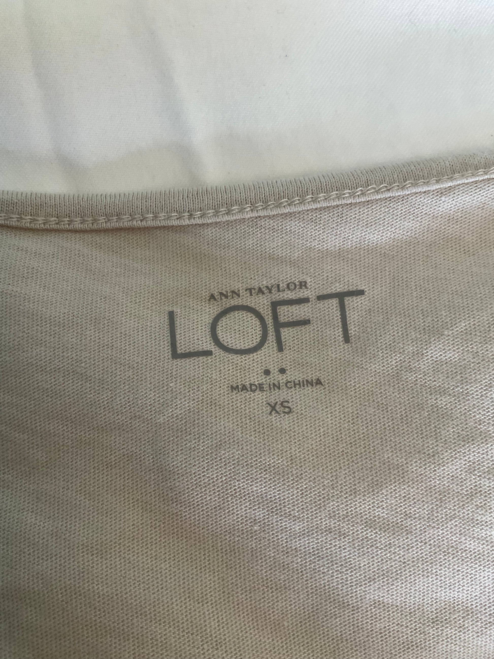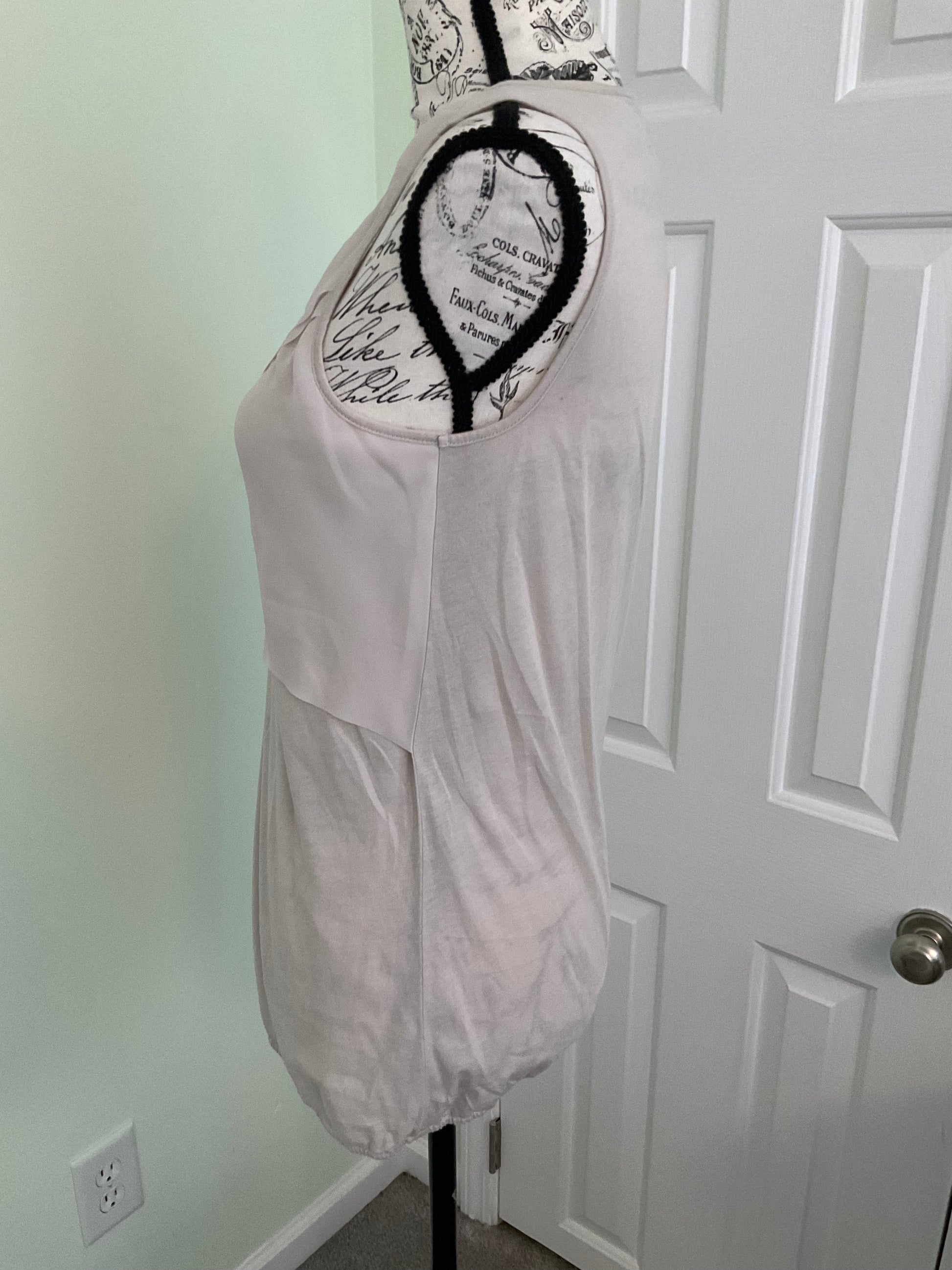 Ann Taylor Loft tank in a Light tan or a cream color with an overlay look on the front and elastic at the waist.