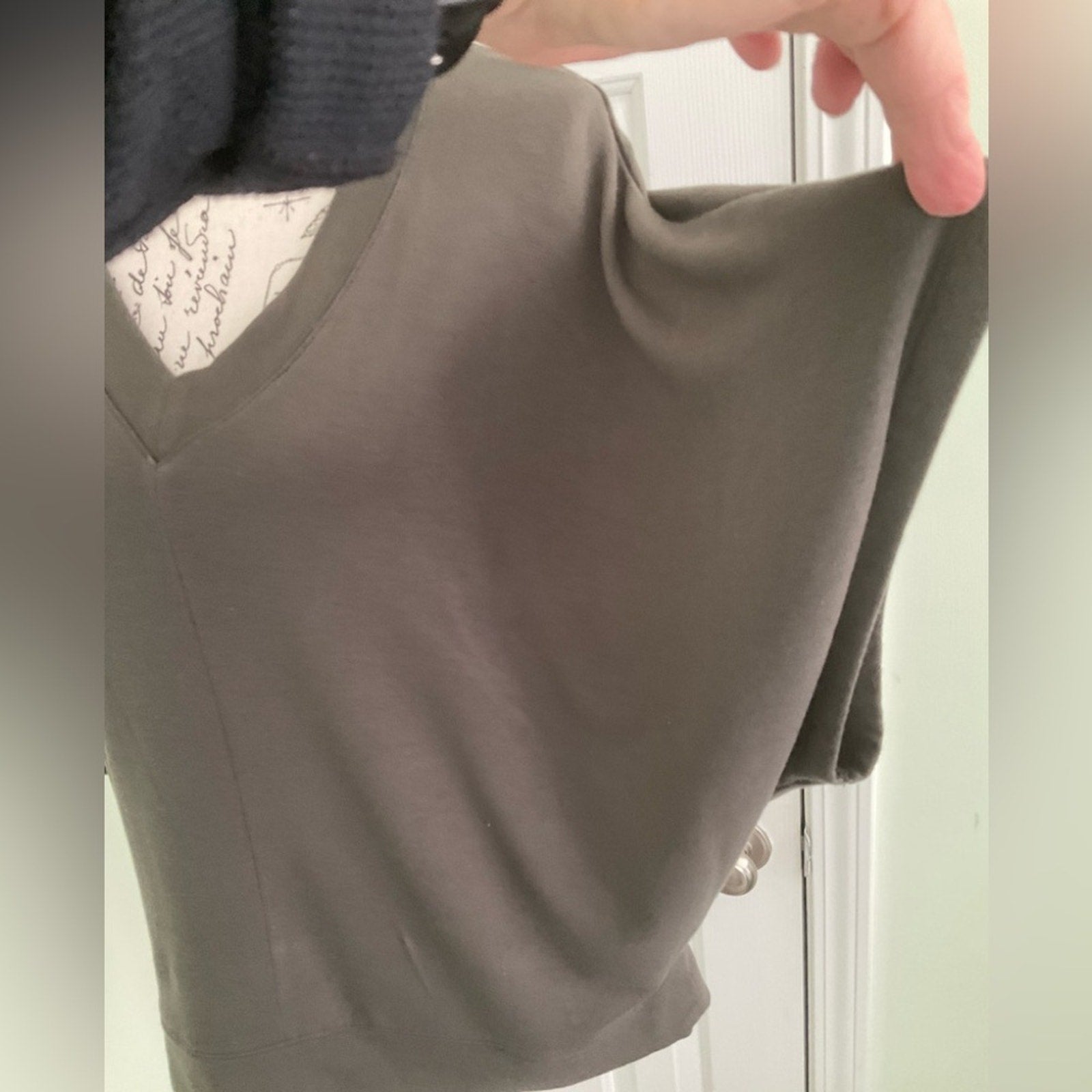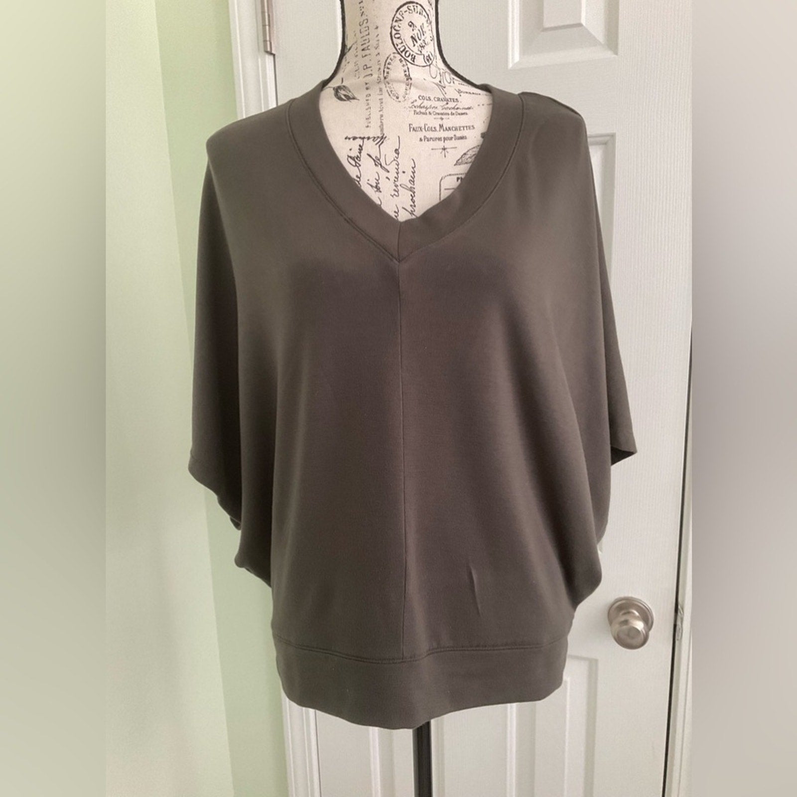 Lou & Grey for LOFT short sleeve dolman style pullover v-neck top. This is a dark green and is very soft.