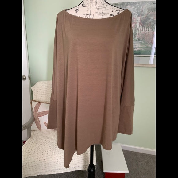 MISSLOOK L/S scoop neck tunic with longer length on right side.