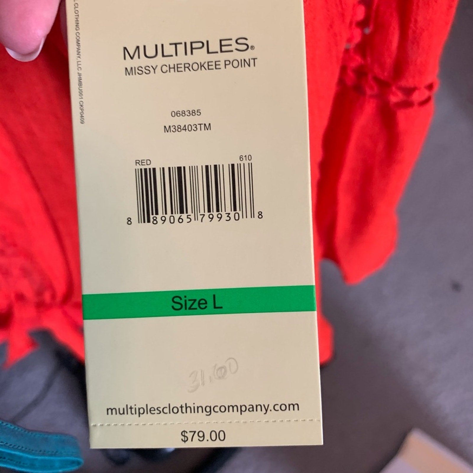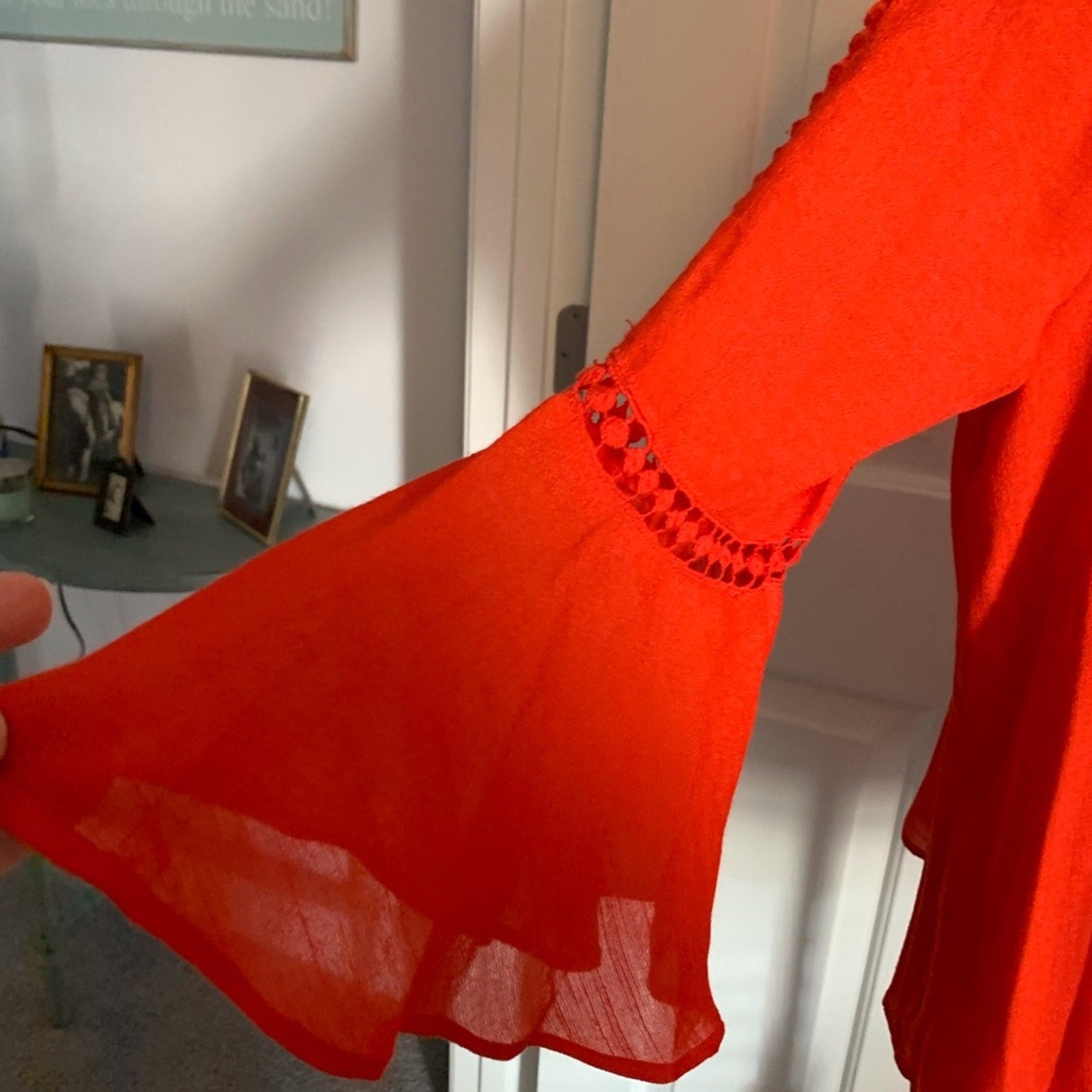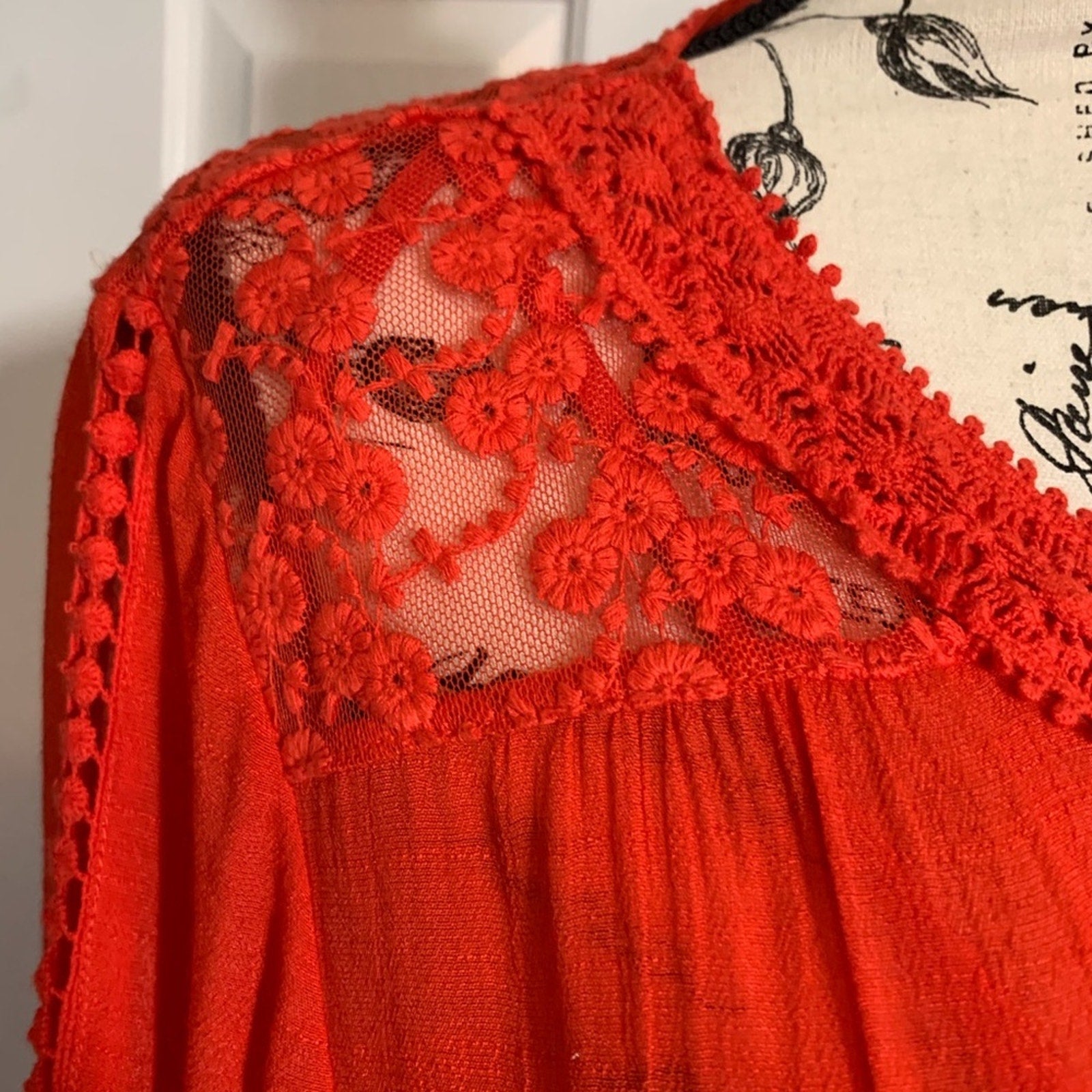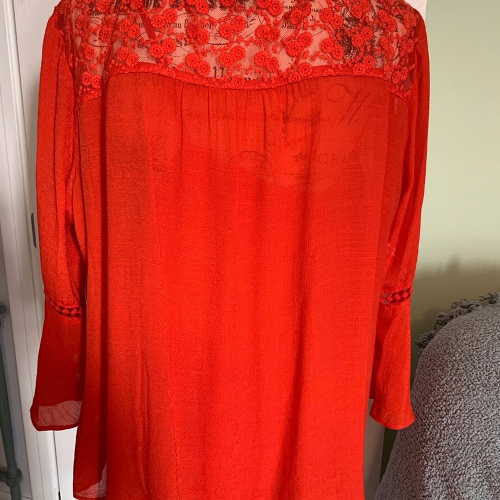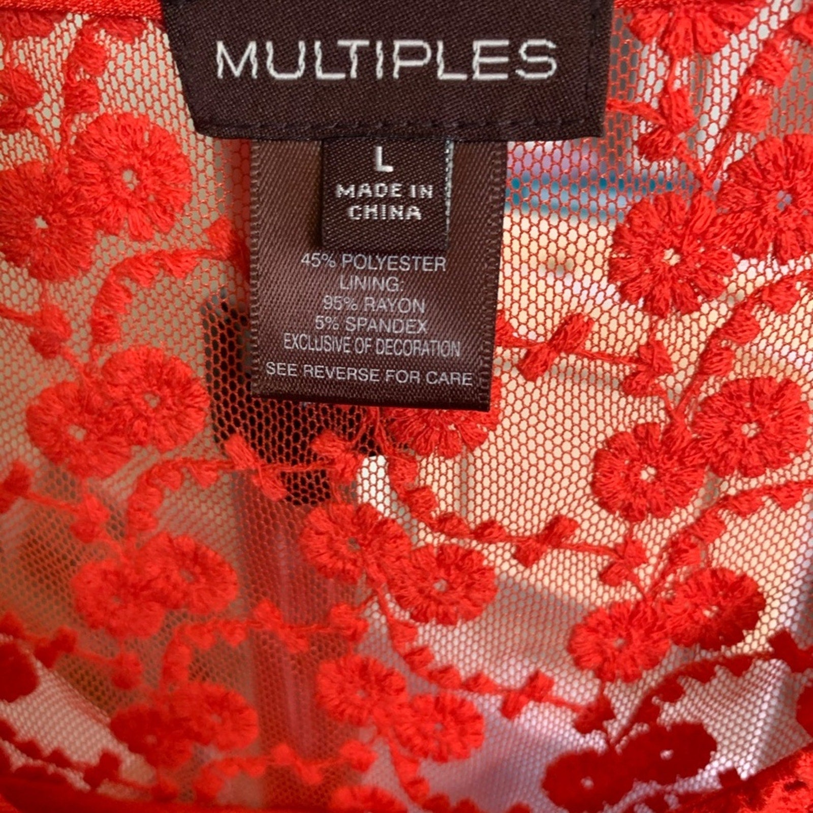 NWT. Multiples Beautiful orange top with matching tank underneath. Lace detail on the top front and back, also down the front and on the sleeves. Tie waistline and bell sleeves.