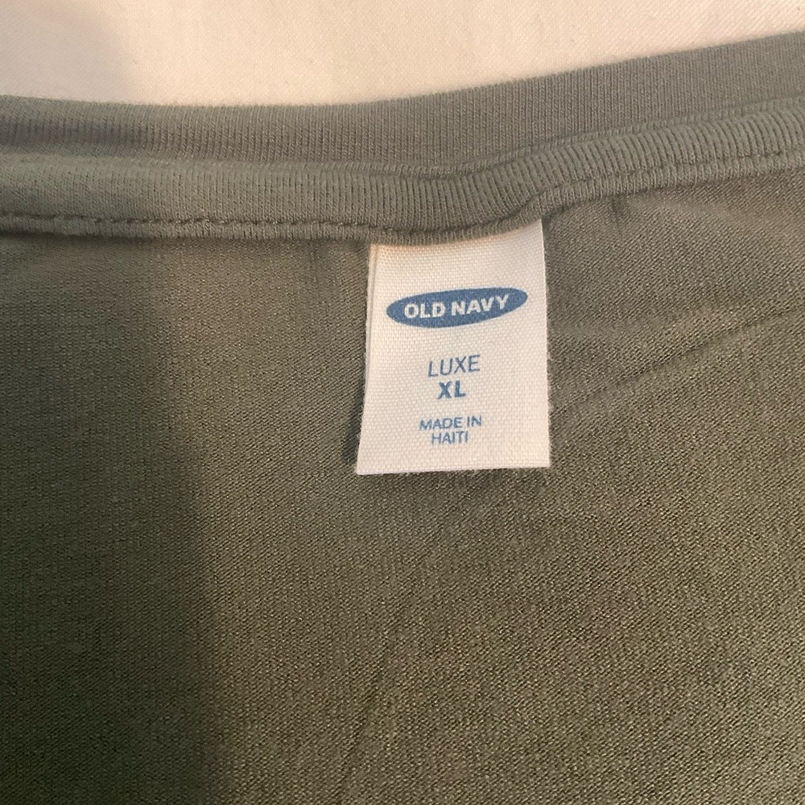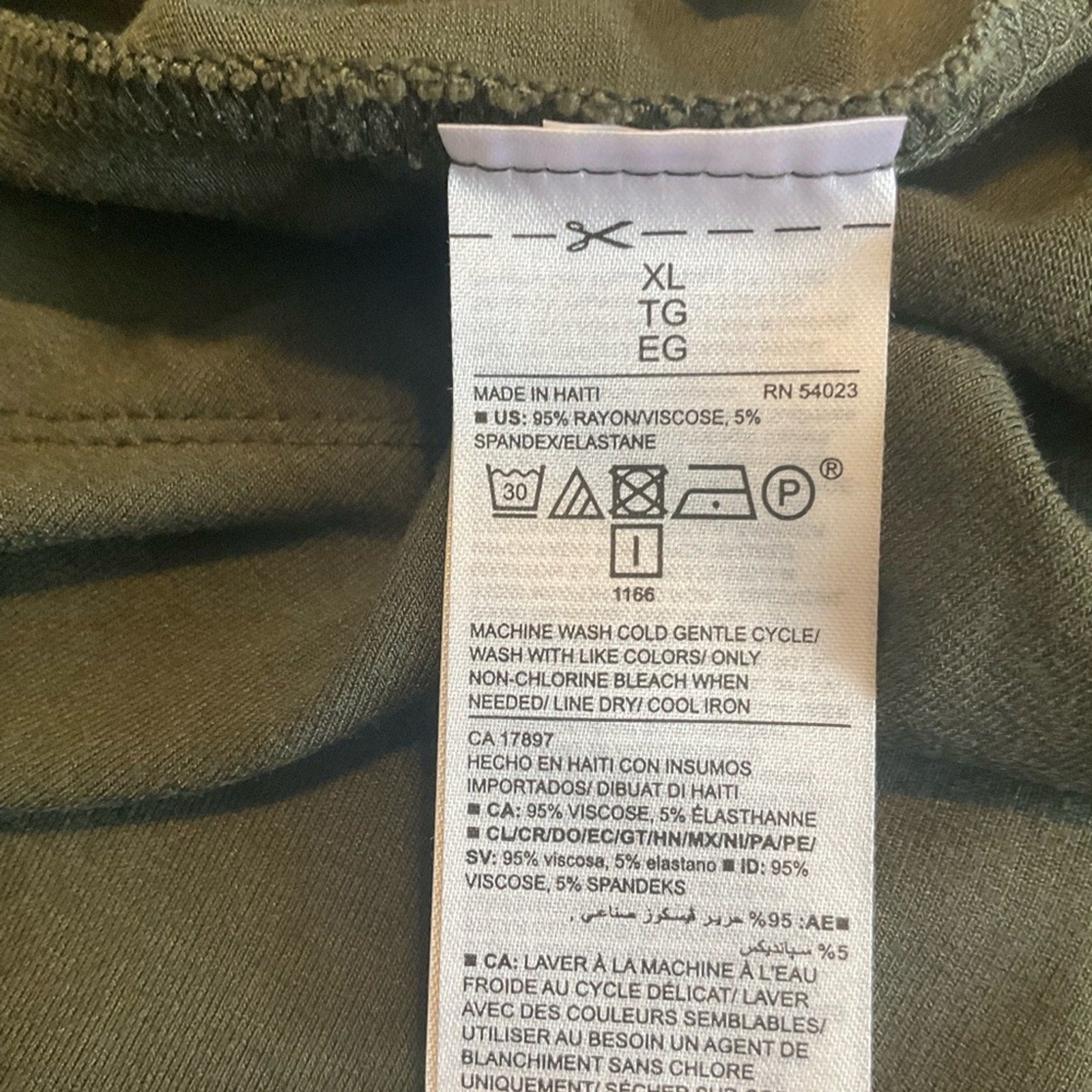 Old Navy Short Sleeve v-neck t-shirt in an army green color. This is a soft luxe feel and has a high low hem.