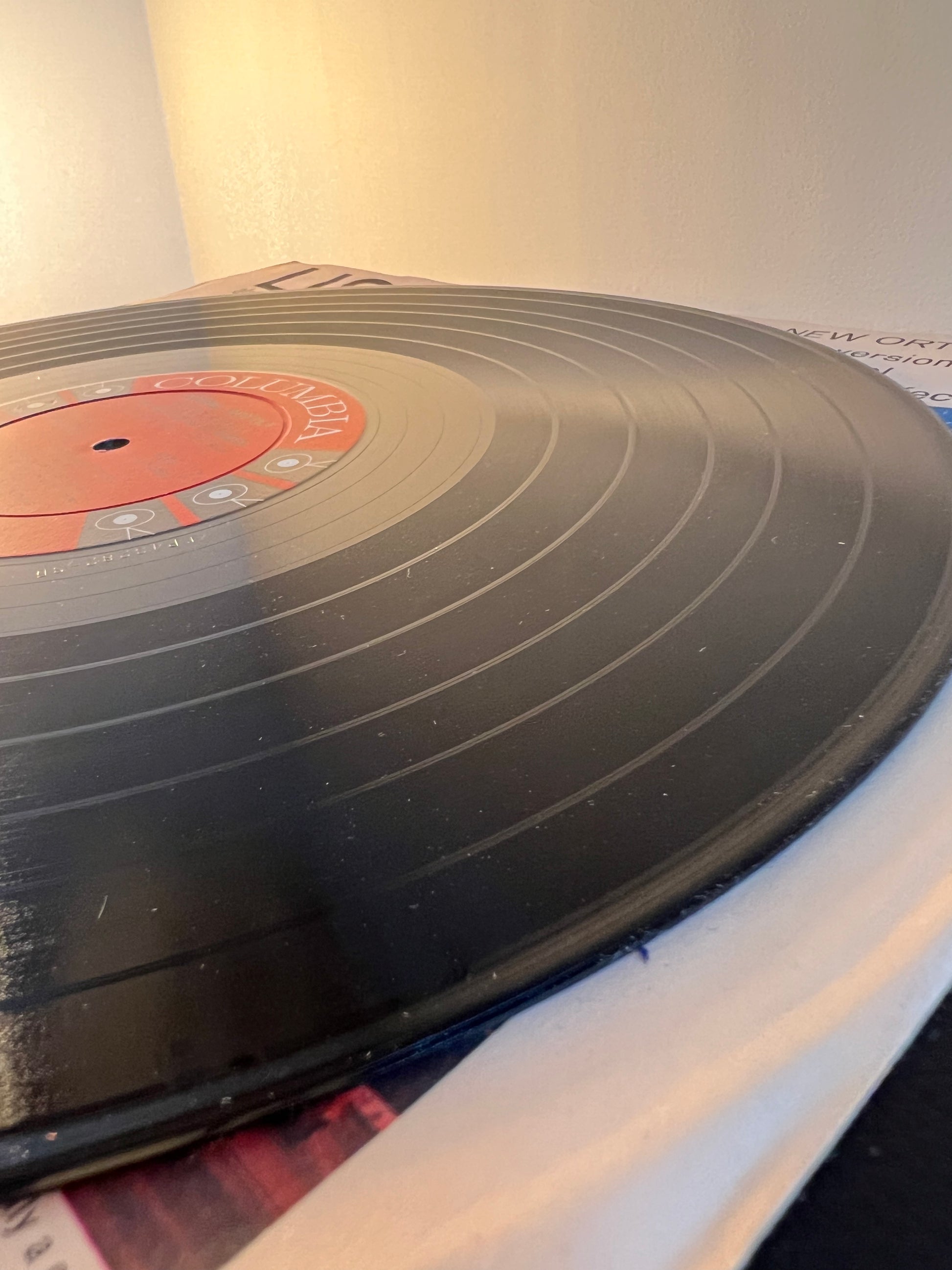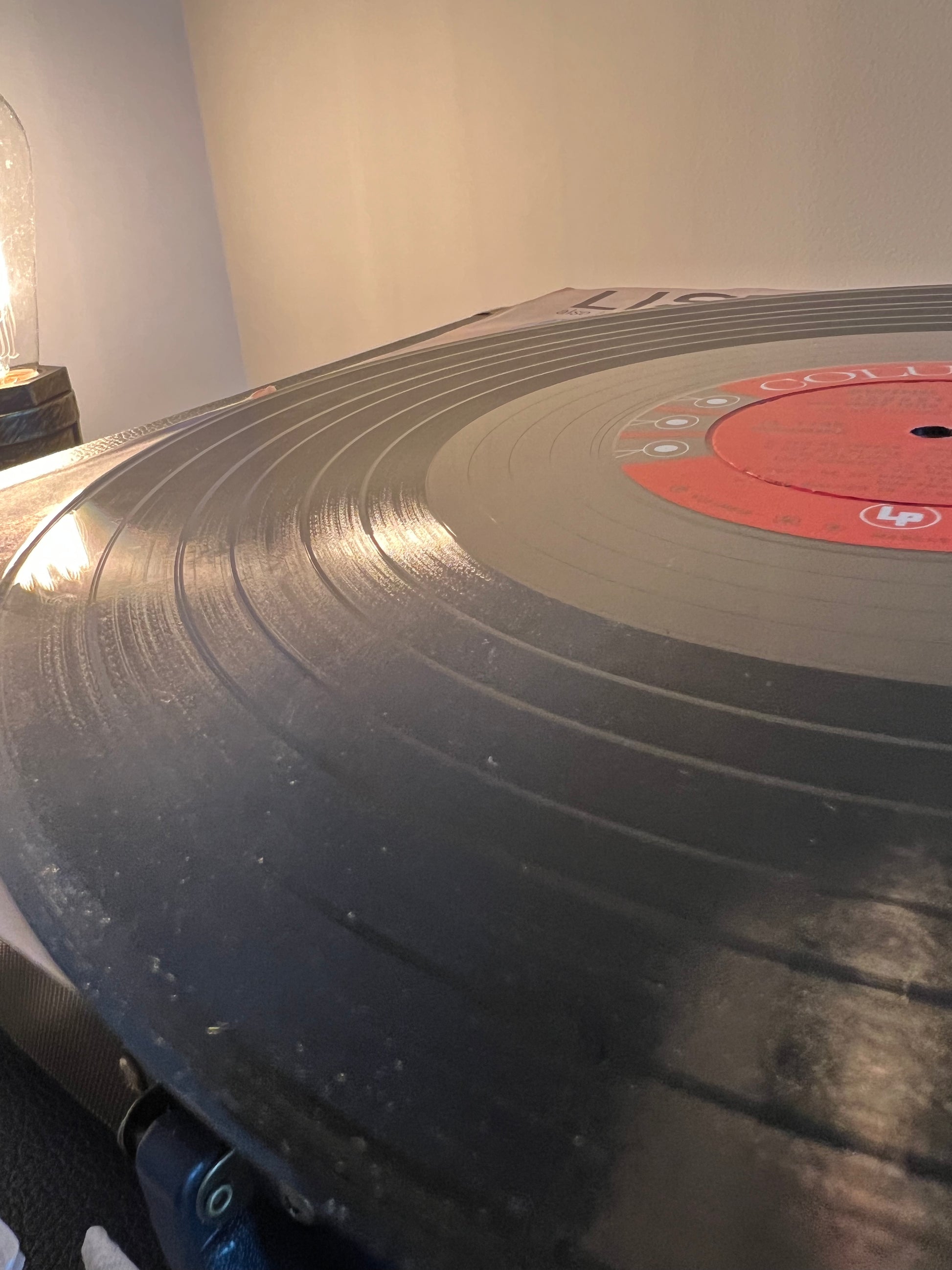 Saw a few minimal scratches from use. So minimal I couldn't get them to show up in the pictures. Record does need a good cleaning. Has been tested and plays great.