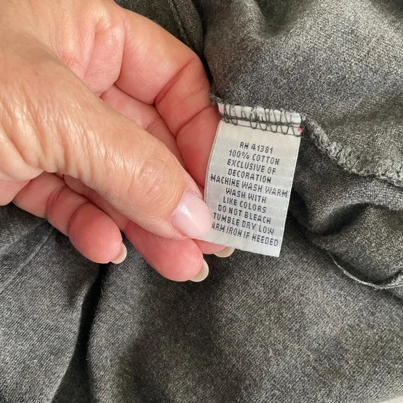 Ralph Lauren Polo crew neck long sleeve t-shirt in dark gray with pink polo emblem on left chest.