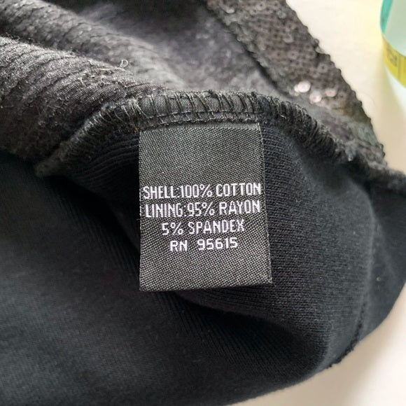 This is a cute simple Rafaella top that is dressy because of the sequined top. It looks like a 2 piece but is actually attached. The overlay is not sweater material it’s more of a knit.