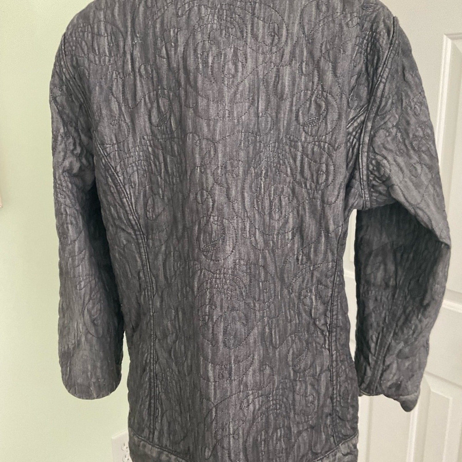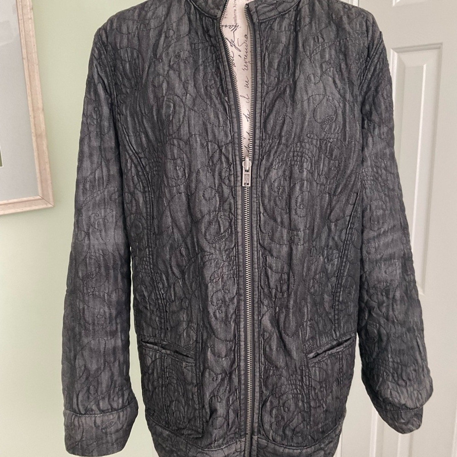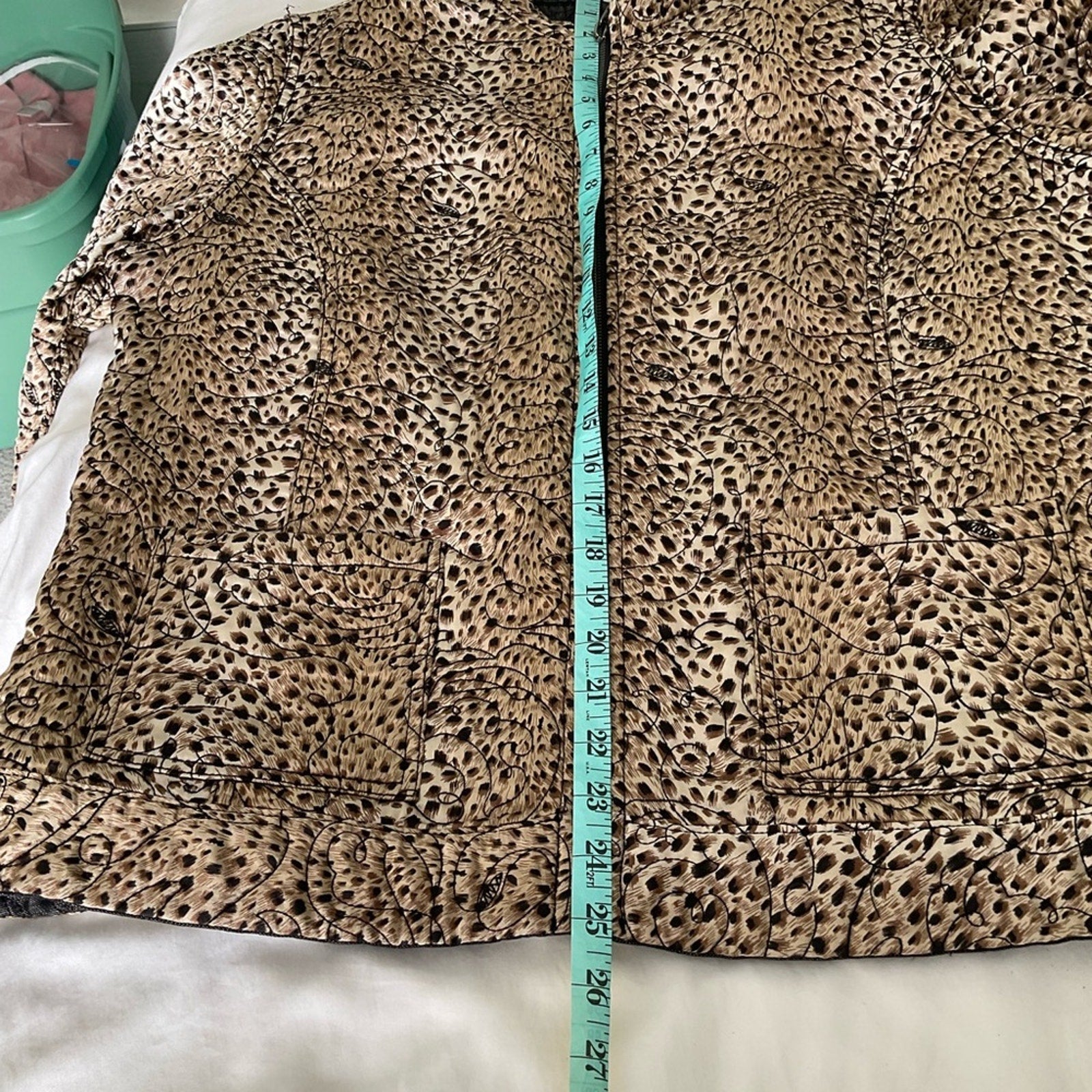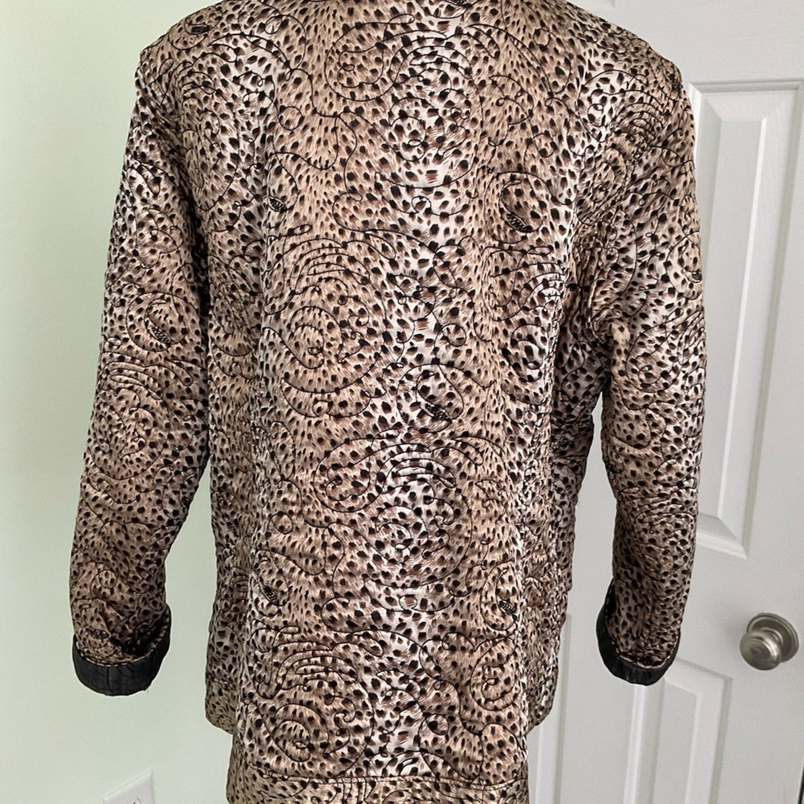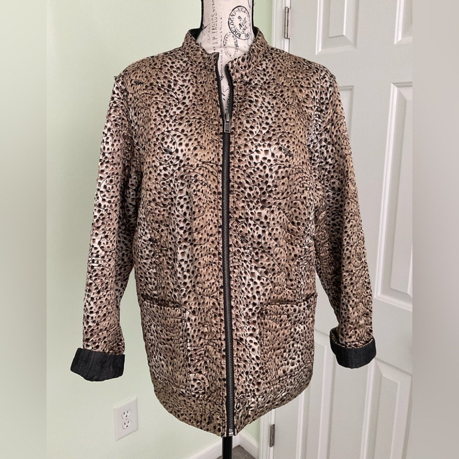 Reversible full zip Jacket that is leopard print on one side and solid black on the other. This is a quilted look. There are no tags since it is reversible. Has small front pockets.