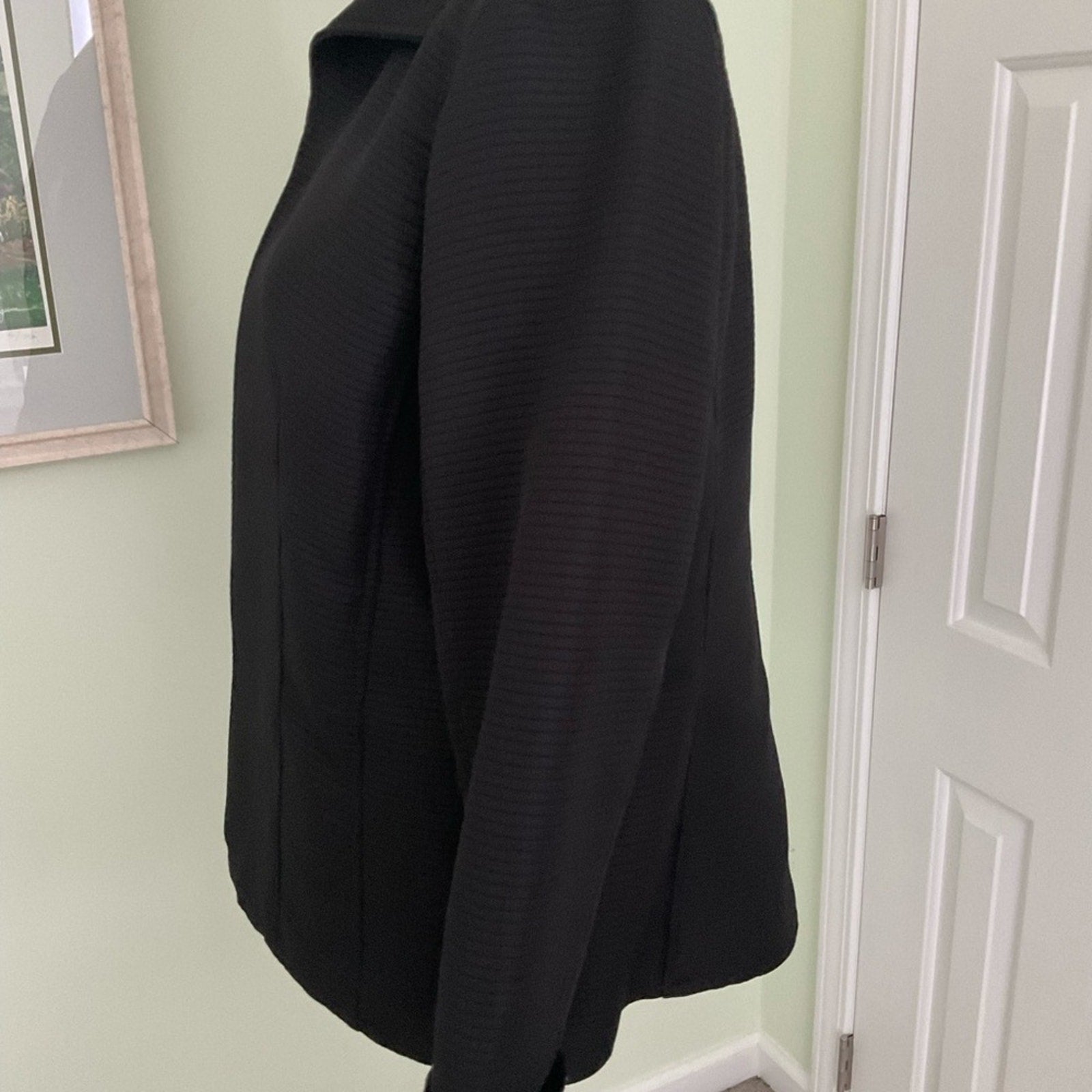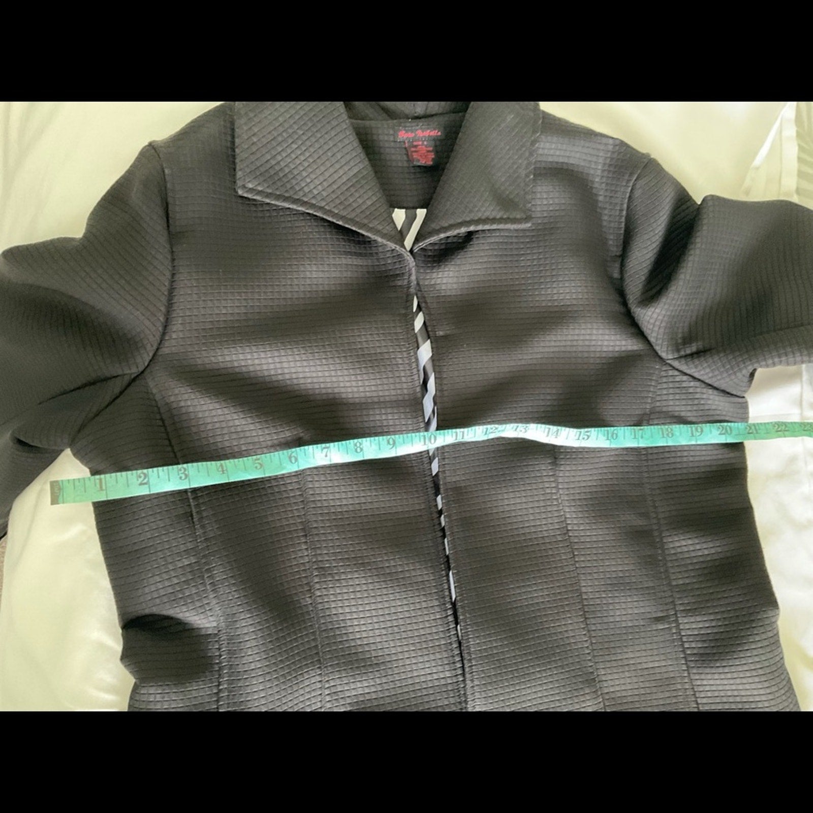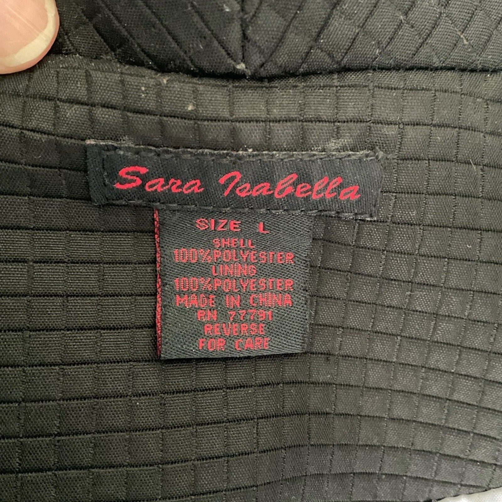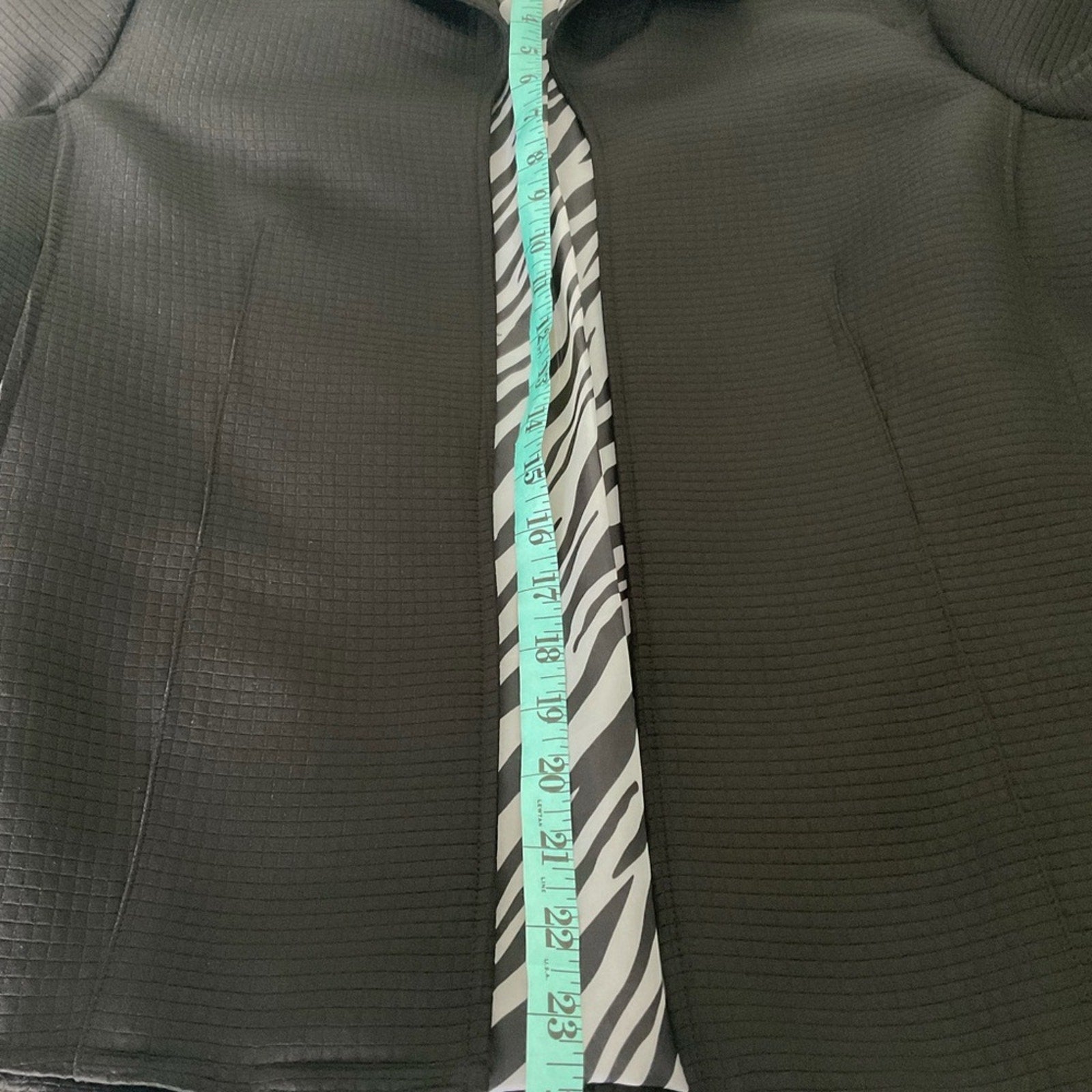 Sara Isabella open front jacket in black with zebra trim on sleeves and the silky feeling lining. This jacket does not have any closures on the front it is simply a pull on that is beautiful to wear.