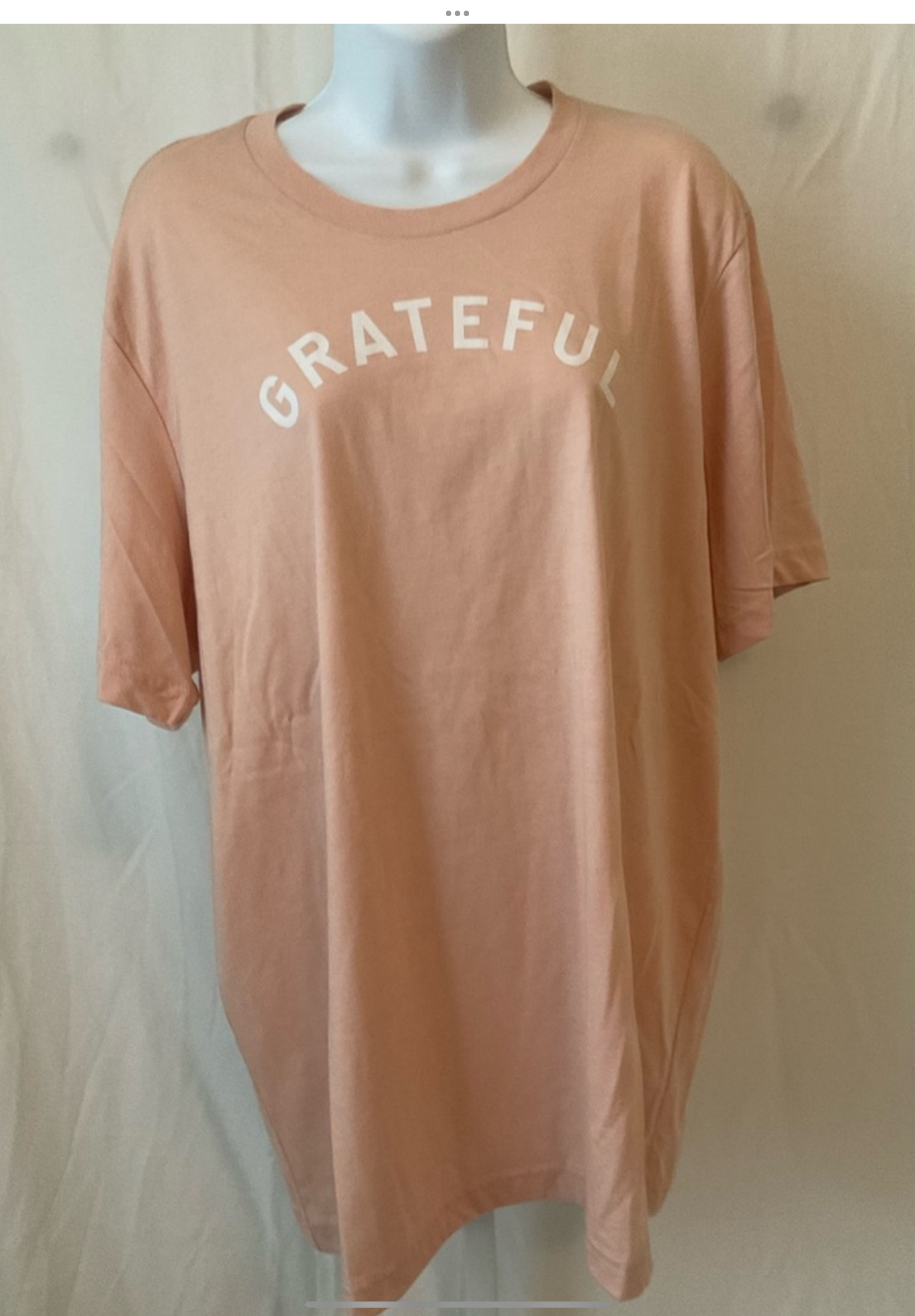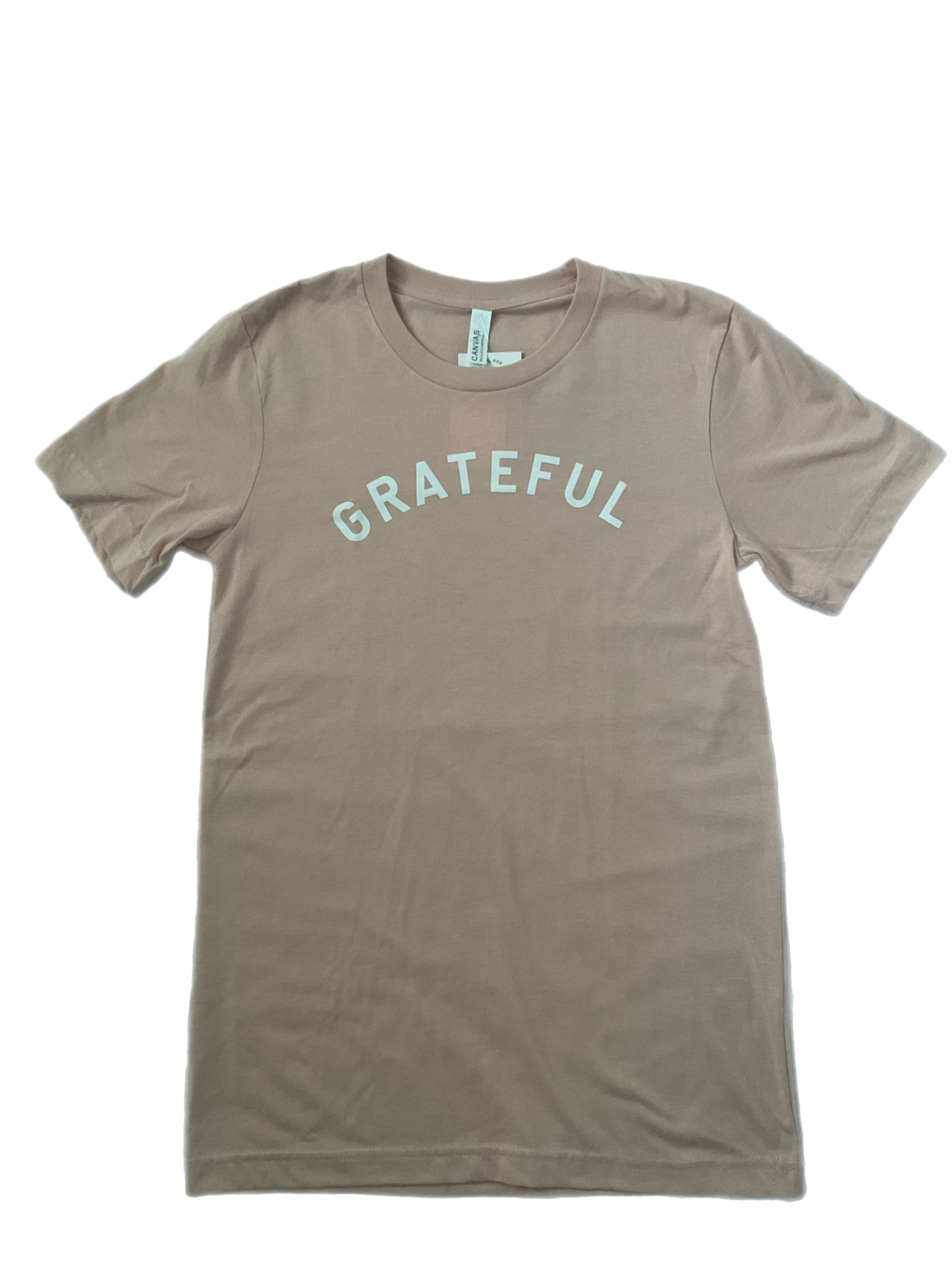 "Grateful" Premium tee brand, ethically made in color heather peach.Features a crew neck with a unisex fit.