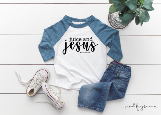 Saved by Grace Co. - Juice and Jesus Toddler Tee - Baseball Tees