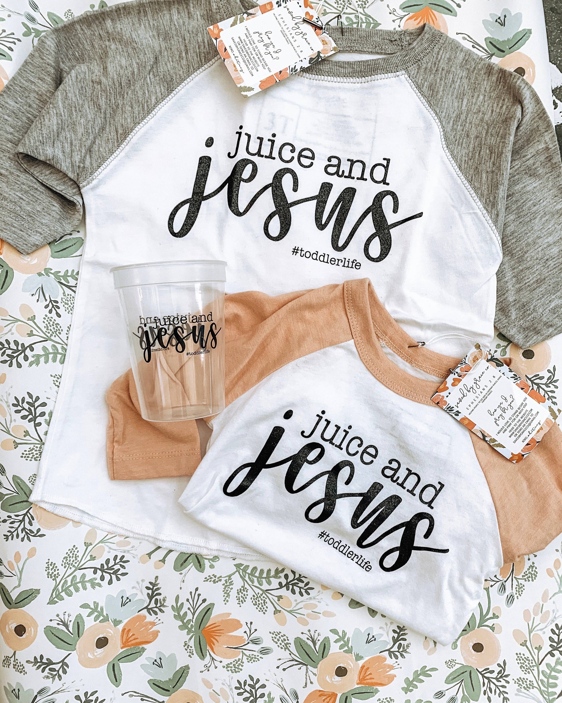 Does your toddler love juice and Jesus? If so, this is the perfect tee for your littles. Juice. Jesus. - HOORAY!