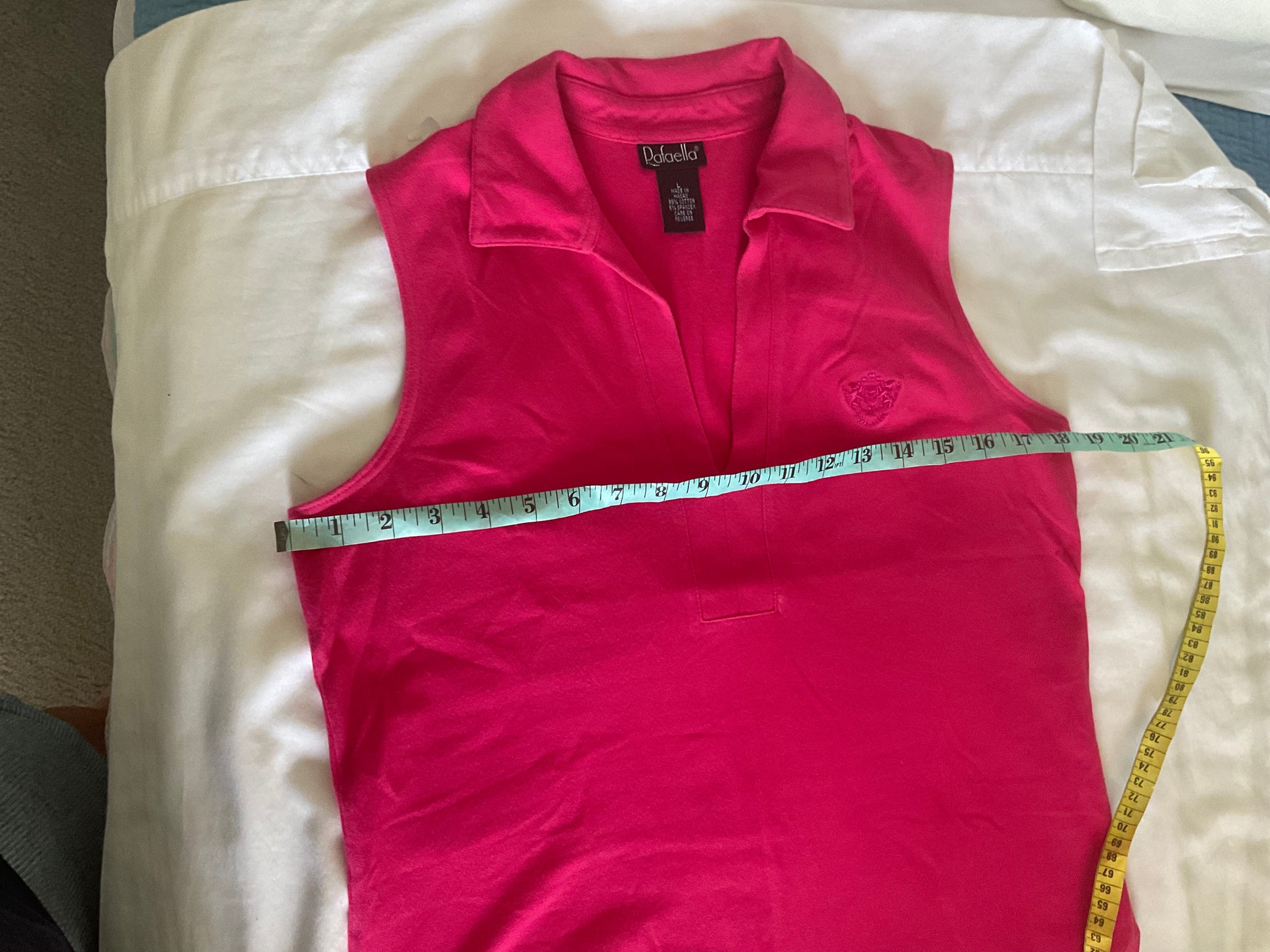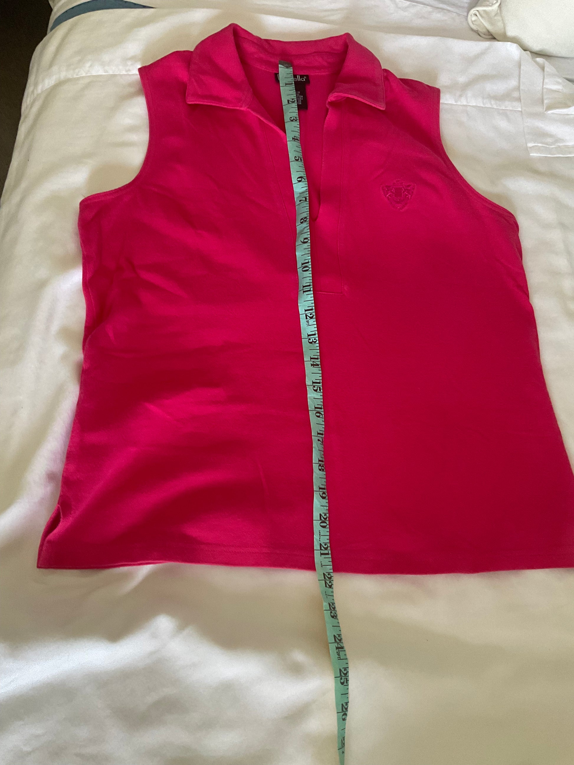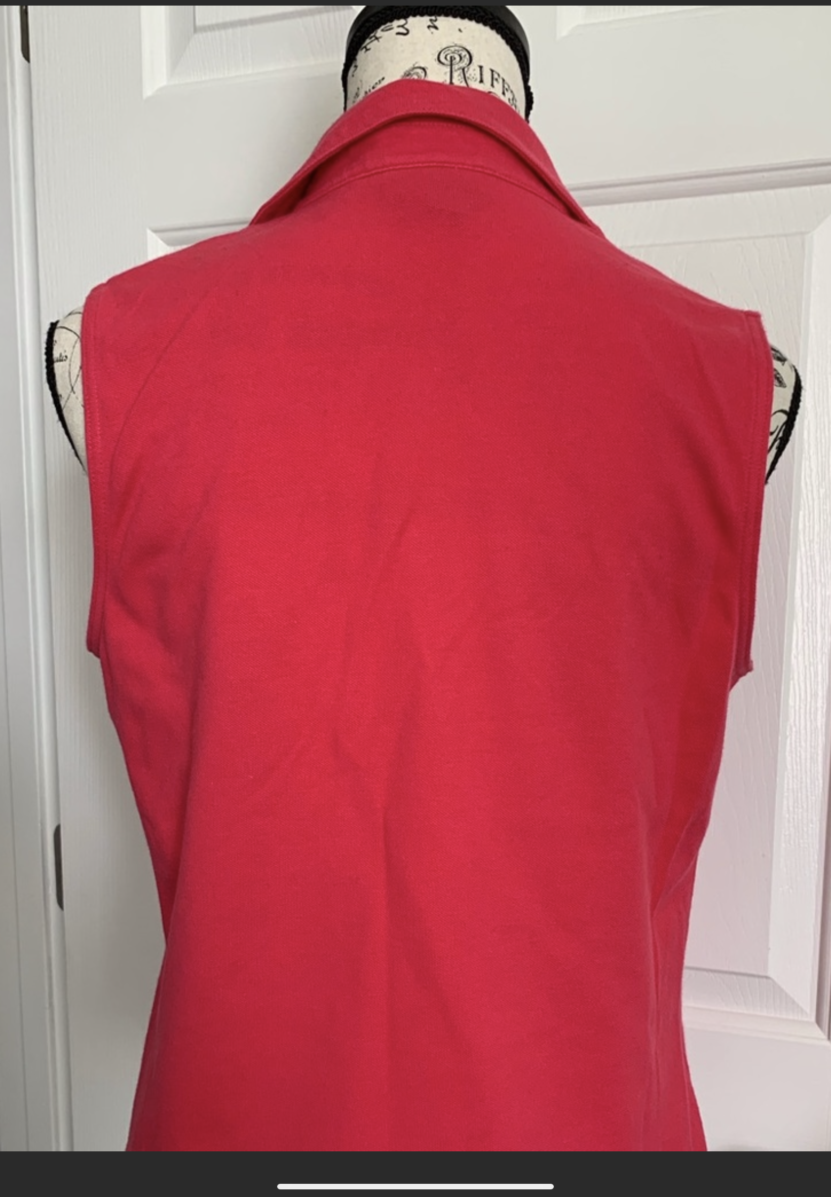 Rafaella sleeveless top in a pretty hot pink color with a v-neck and collar. This is another blast from the past in my smaller year so worn only a couple of times.
