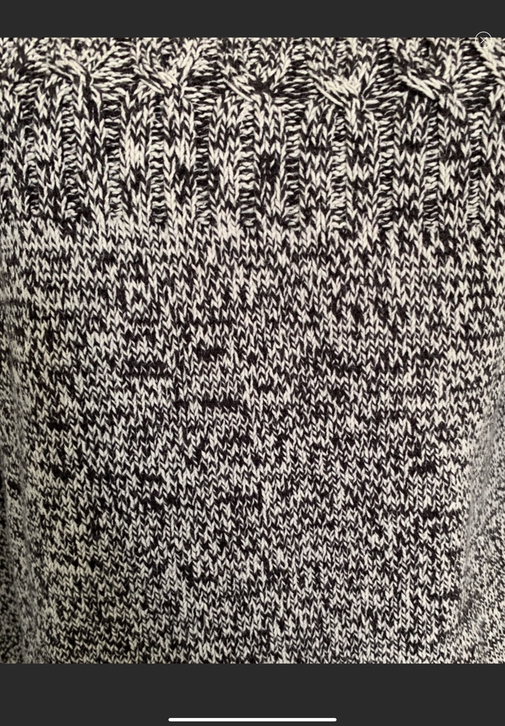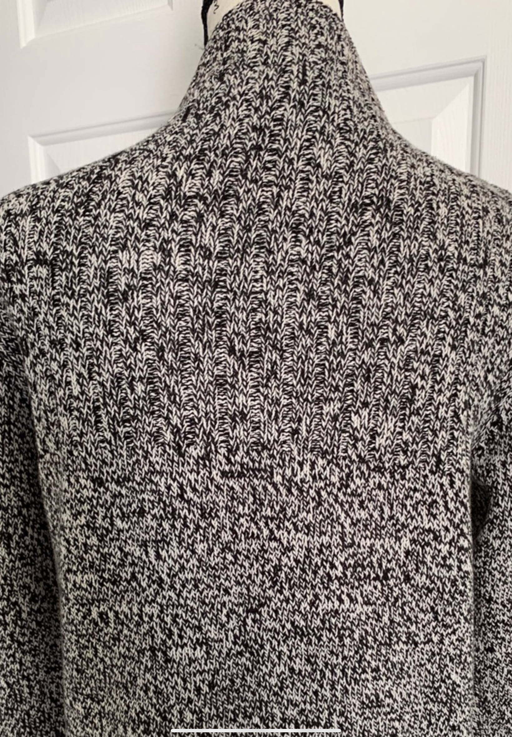 Liz Claiborne long sleeve mock neck sweater in a mingled black and white color. Beautiful ribbed detailing on the front at the top of the sweater. Excellent condition.
