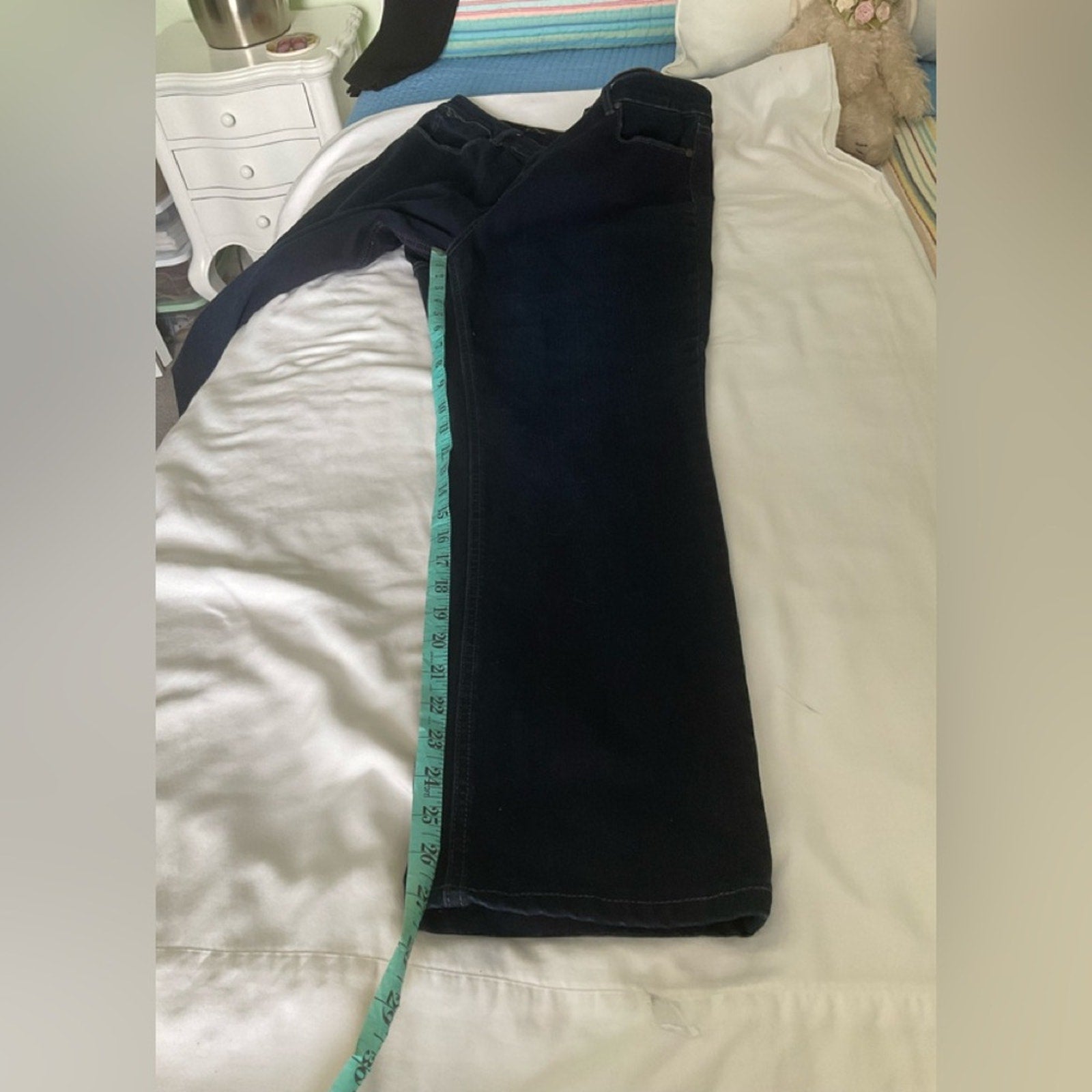 Size 14 and inseam measures roughly 27” and waist 16 1/2”.